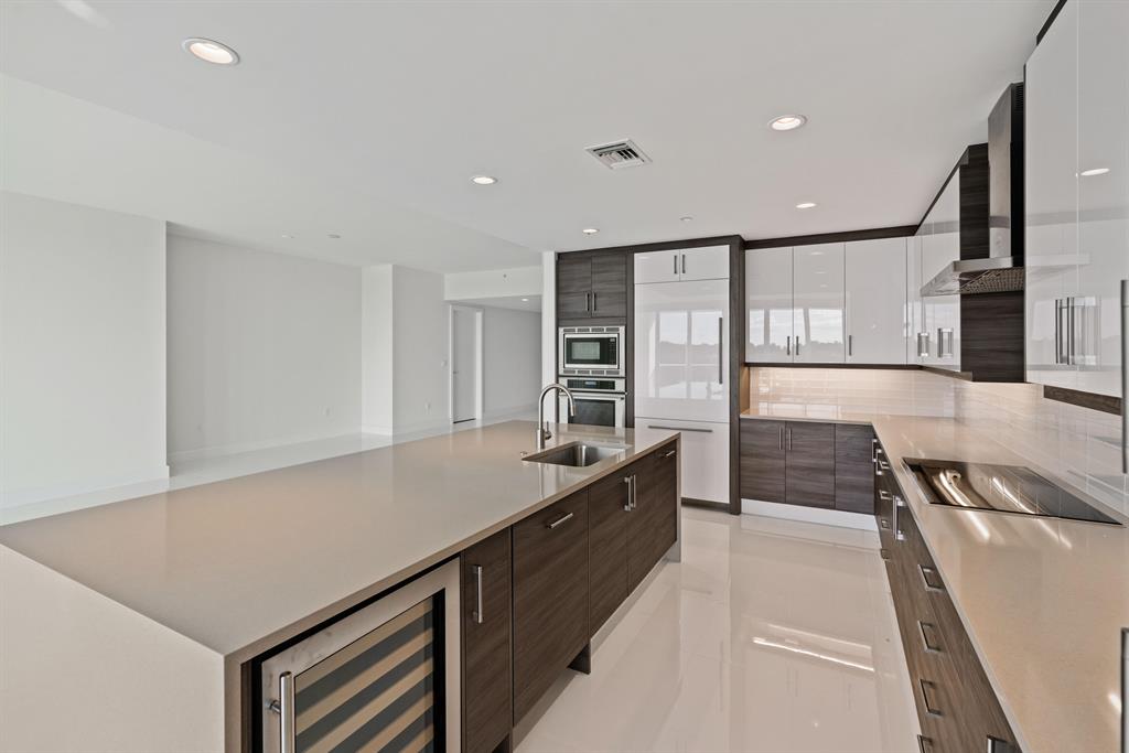 This newly constructed custom residence features 3 bedrooms, 3 baths, built-in closets, motorized shades throughout and built-in entertainment centers in both the great room and study. Azure is Palm Beach Gardens premier waterfront address. Residences will be greeted at the 24/7 manned entry gate and continue through to Azure's two mid-rise buildings which wrap the harbor and its full service marina. Owners will conveniently exit their 2 garaged parking and enter their privately keyed elevator to their great room residence that features expansive living areas and 9-10 foot ceilings. Included features: large white porcelain tile floors, quartz counters, Grohe plumbing fixtures, Thermador appliances, and impact windows and doors. Available for immediate occupancy.