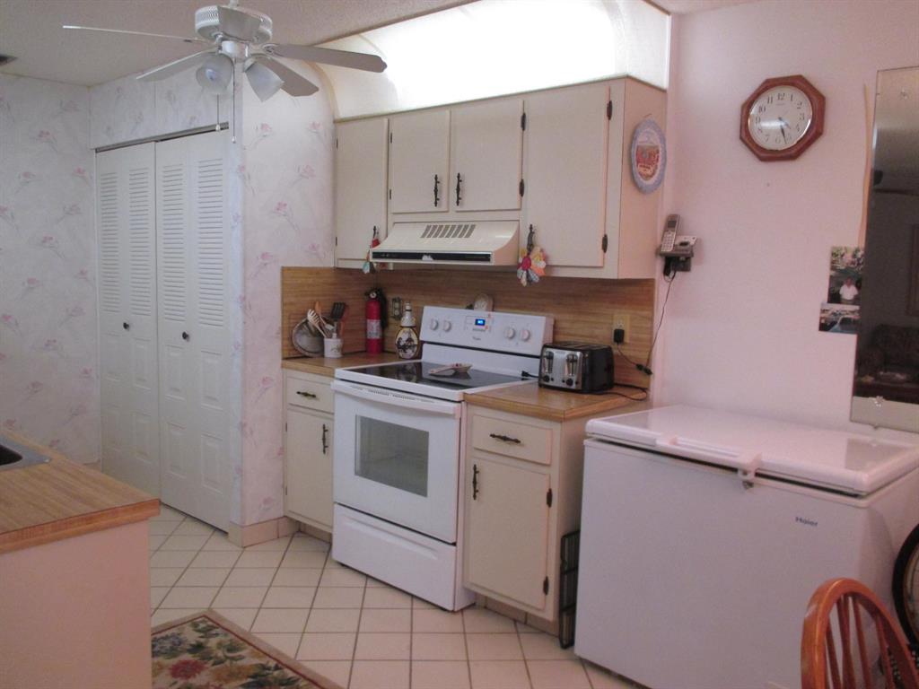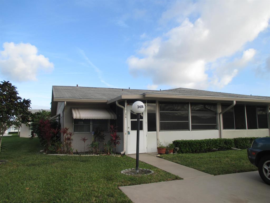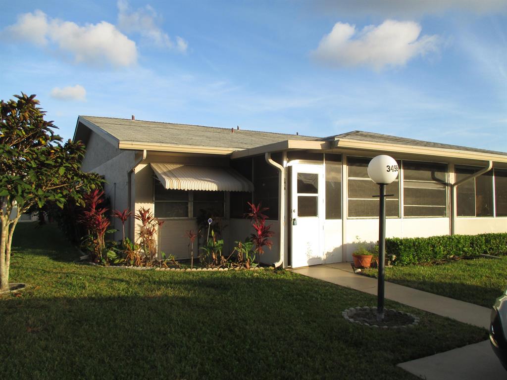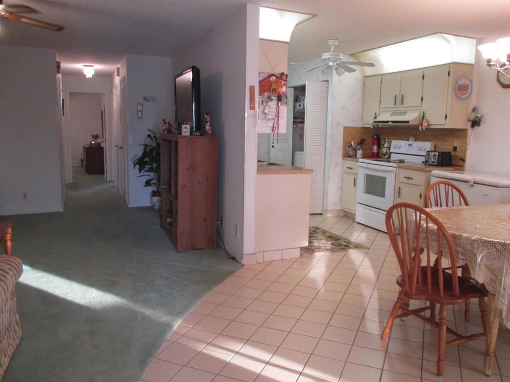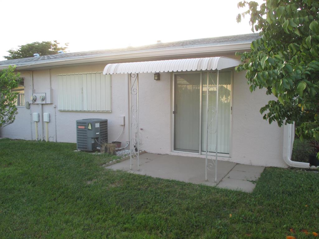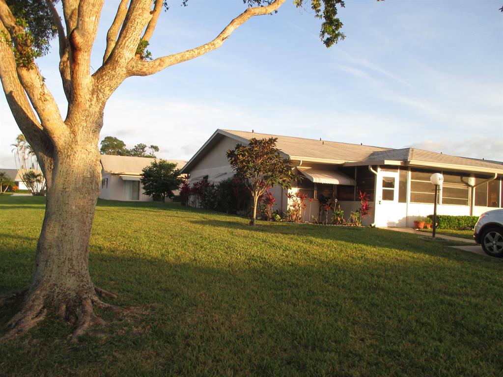 Corner Villa, front enclosed patio with vinyl windows and extra storage closet.Newer kitchen appliances. Unit is all original and will need updating. Great buy! One small pet ok limit 20 lb. No rentals first 2 years of ownership. Active 55+ guard gated community with Clubhouse, pool, tennis, Bocci Ball courts, gym etc. FREE 18 hole executive Golf Course & miniature Golf. This is a HOA community, owner responsible for insurance & maintenance of their villa.