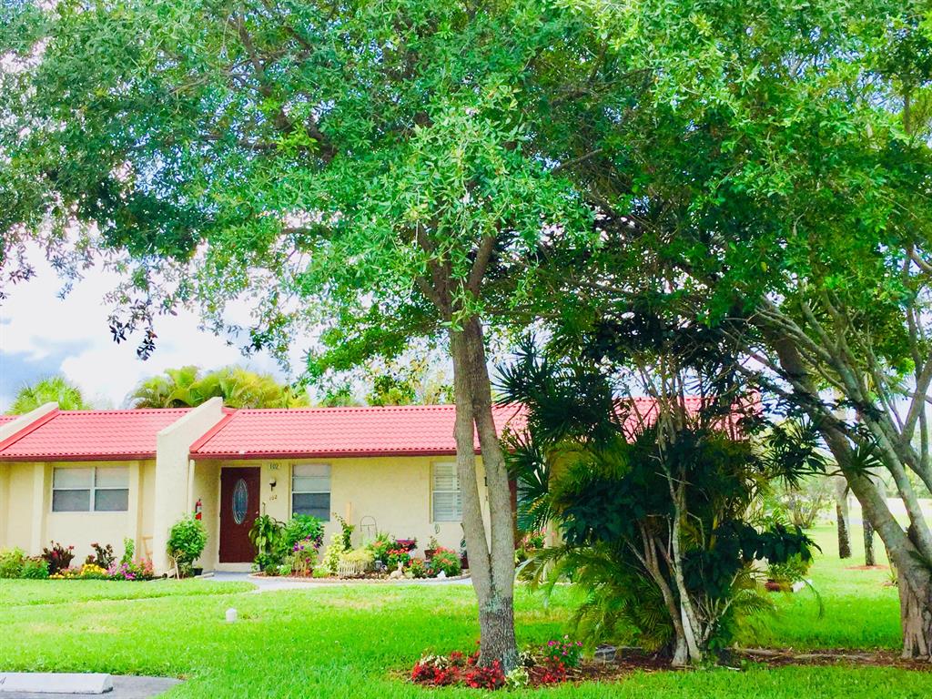 Beautiful updated corner unit in Golden Lakes a 2 bedroom 2 bath villa with water views. Great eat in kitchen with granite counter tops and Stainless steel appliances. Both bedrooms have there own bathroom and walk in closets. This villa has lovely landscaping with other features including tiled floors throughout, stack able Washer & Dryer, Florida room with extra storage, sliding glass doors over looking water views for your relaxing enjoyment. The Golden Lakes village has nice amenities such as Pool, Library, Community, Game & Fitness rooms, Hot Tub/Spa, Shuffleboard & Bocce court's, Social Director for many activities, Cafe for Breakfast & Lunch. Conveniently, located near Shopping, Restaurants, Golf and more.