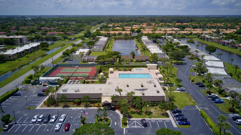 Beautiful 16'' white tile throughout the public areas make this Corner 2/2 Villa feel spacious and bright. Enjoy a water view form your glass breakfast table & couch in the larger south-facing 22x10 enclosed patio. Qualify furnishings are negotiable, plus enjoy built-ins in both bedrooms. Rear patio offers a full-size washer/dryer & storage closet. Just steps to Lk Rebecca's satellite Pool & a short drive to the clubhouse w/lg pool, sauna, gym, tennis, card room & cafe. Discover Golden Lakes - 24/7 guard gated, full time social director, courtesy bus & more. Comcast/Xfinity w/Internet included in monthly fee. Newer Phase B section allows one pet up to 30 lbs. Lush landscaping surrounds your front porch with convenient parking & guest space right in front of this special condo.