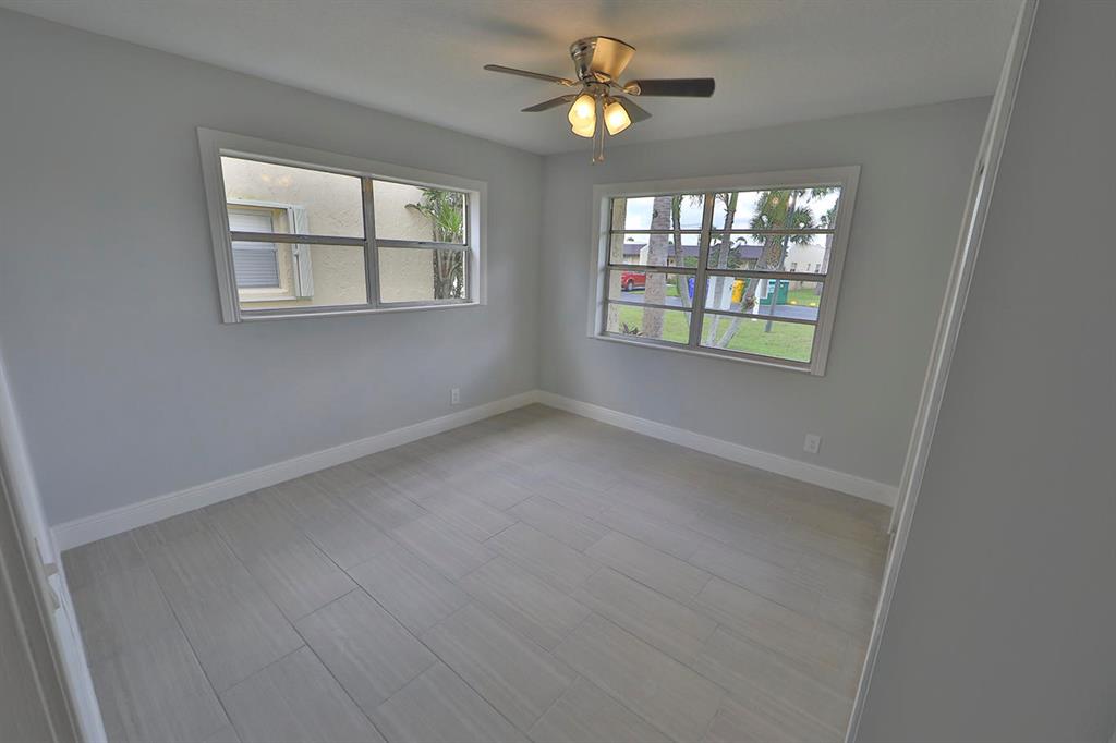 Beautifully remodeled villa with great pond view. New kitchen with white shaker cabinets, granite counters, stainless steel appliances, new ac, new tile floors throughout, updated bathrooms