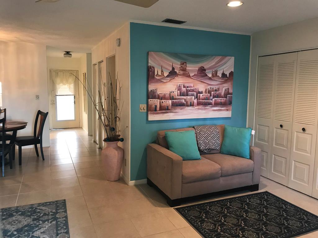 Extra large 3 bedroom convertible villa with 2 full bathrooms. You can really feel the extra space over the smaller units. Tiling throughout, no carpet. Partially renovated with new bathroom vanities and water saving toilets. Lots of closet space with an bonus utility closet in the screen in patio. Brand new AC with a 5 year warranty and surge protector. New stackable washer and dryer in unit. Located near the gate for security and convenience but still quiet and private. Priced to sell for size and quality in this community