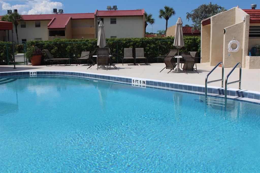 Don't miss this great 2 bedroom 2 bath with beautiful water views. Brand new stainless steel appliances. Perfect location directly across from the neighborhood pool, laundry and mail area. Walk right out your door to relax and swim. Very close to the main club house too. Association will allow up to 2 house cats only in this condo. New laminate flooring in the living areas and bedrooms. Ready for a new owner.