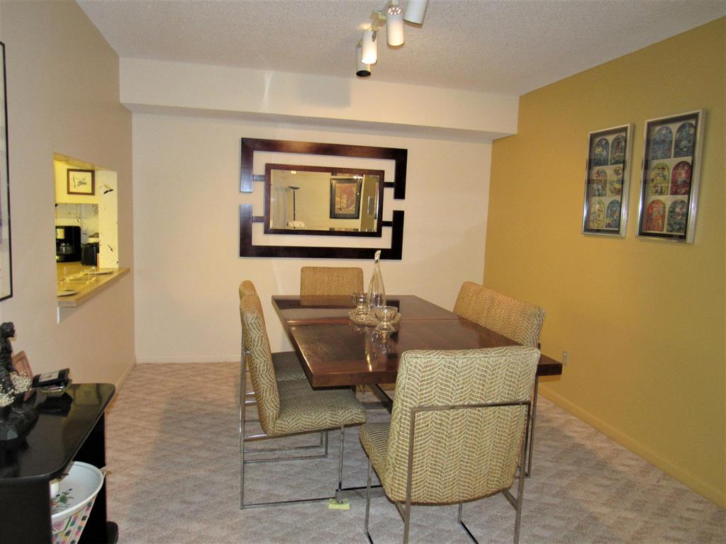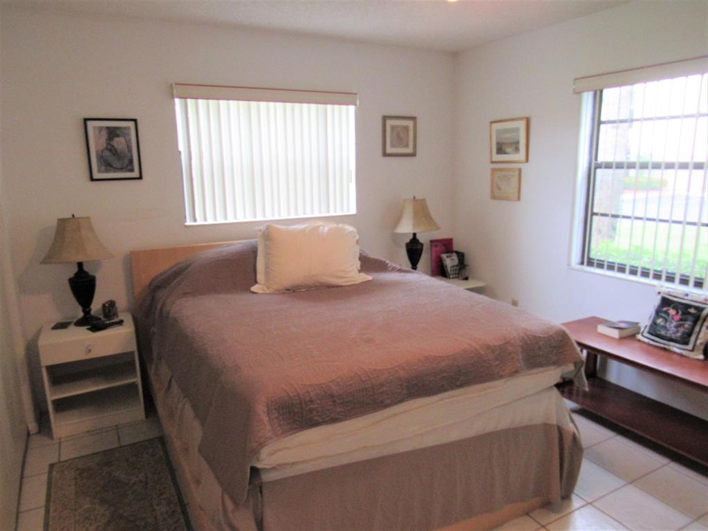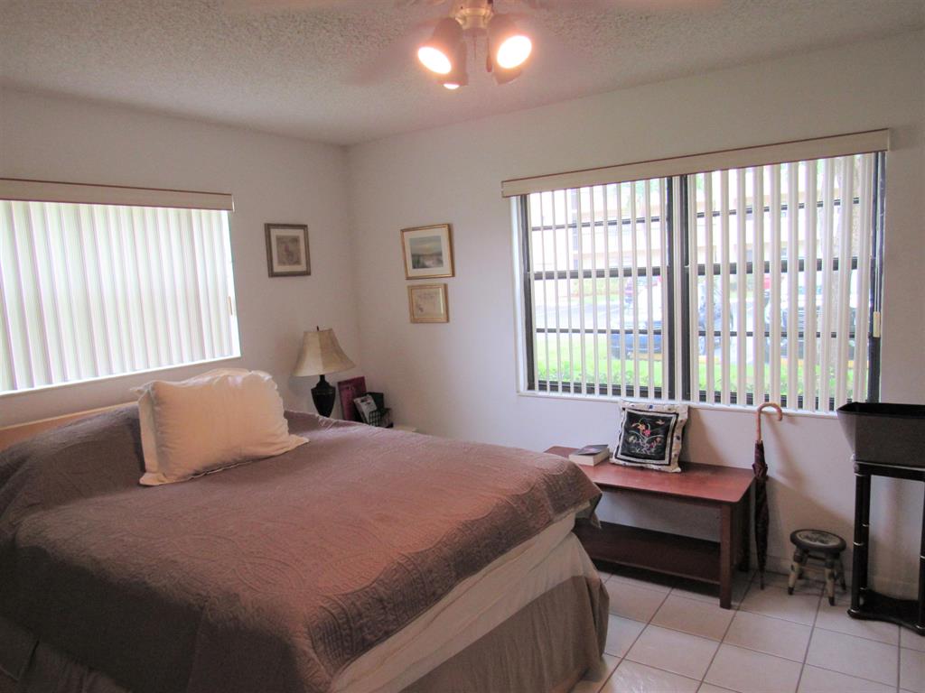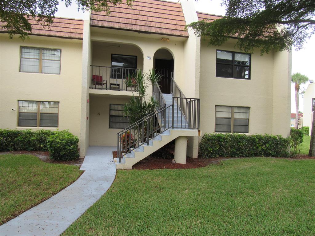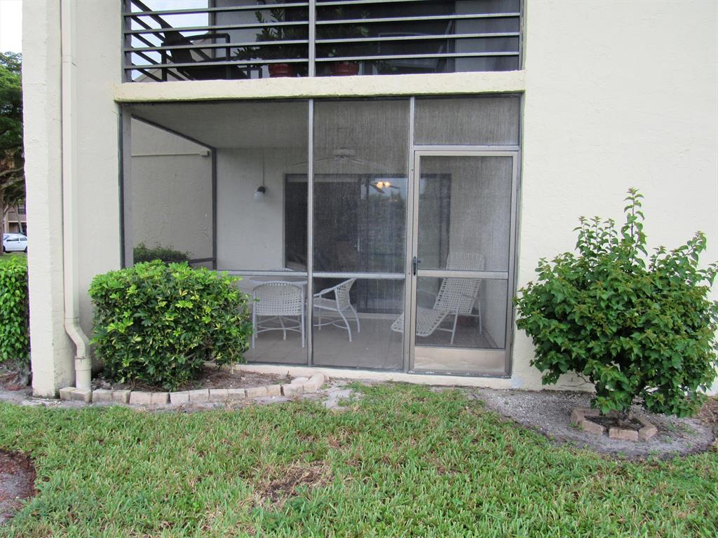 Large 1st floor corner 2 Bedroom/2 Bath Condo. Large eat in kitchen and a formal dining area. Master Bedroom has two closets, one a walk in. Large 2nd bedroom and bath. Nice waterview from the screened in patio. Full size washer/dryer in unit. Newer water heater and range. Your updates will make this the perfect home. This unit was only used a few months a year by snowbird owners. Being sold furnished and fully equipped. Very close to the satellite pool. One dog up to 30lbs. allowed in this phase of Golden Lakes. Come enjoy your active 55+ lifestlye with tons of activities. Pools, Jacuzzis, Card/Game Rooms, Billiards, Tennis, Shuffleboard, Gym and much more. Property Management and Social Director on site. Close to shopping, restaurants and Florida turnpike. Just minutes to PBIA.