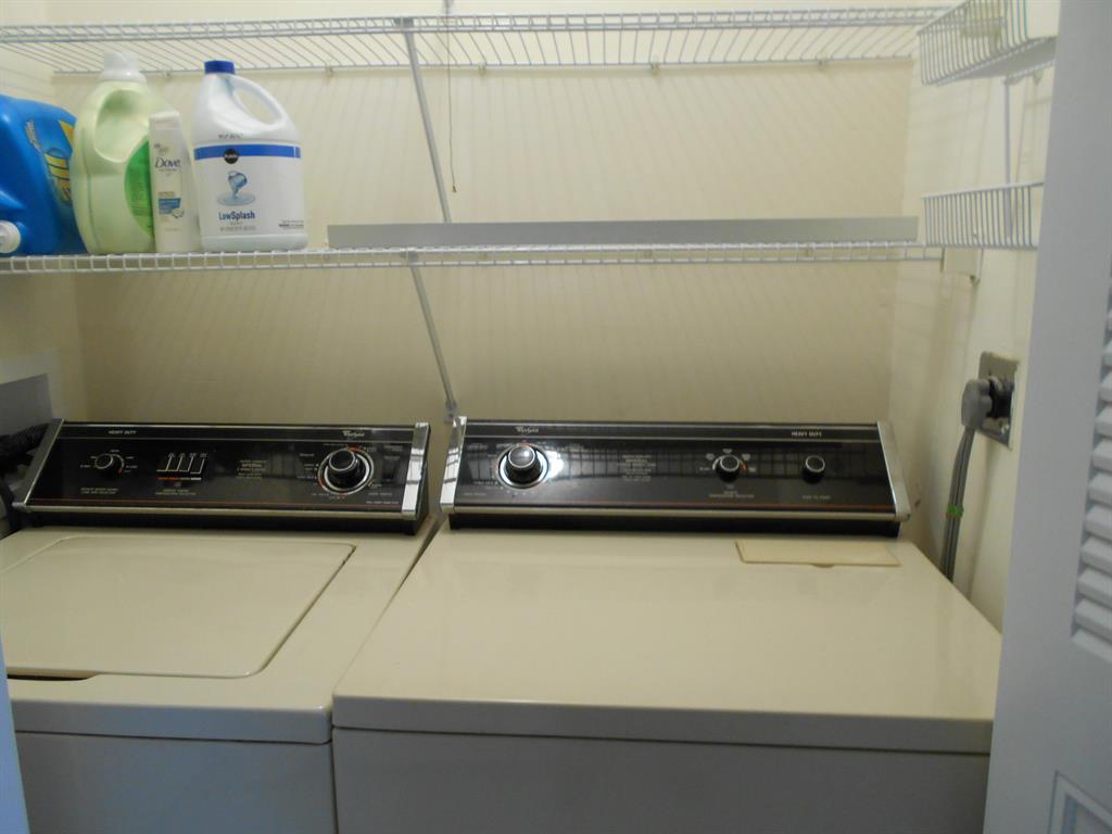 Much sought 1/2 a duplex, 11 windows, Light & Bright! Vinyl shelving in the many closets, all new. Freshly painted (all (e) plates new)New carpet, tiled kitchen & dining area. Tank less water heater. 4 fans, custom mirrors Newer flat top range. New microwave, full sized W/dryer.Enclosed patio 18x11, Clam shutters.18x11, Roof 2004. Broadband TV & Internet incl. in main. Golf, htd. com. pool, sauna, game room, library, miny golf. Minutes to post office/grocery, airport 10-15 min. Outlet Mall/Whole Foods 15 minutes.