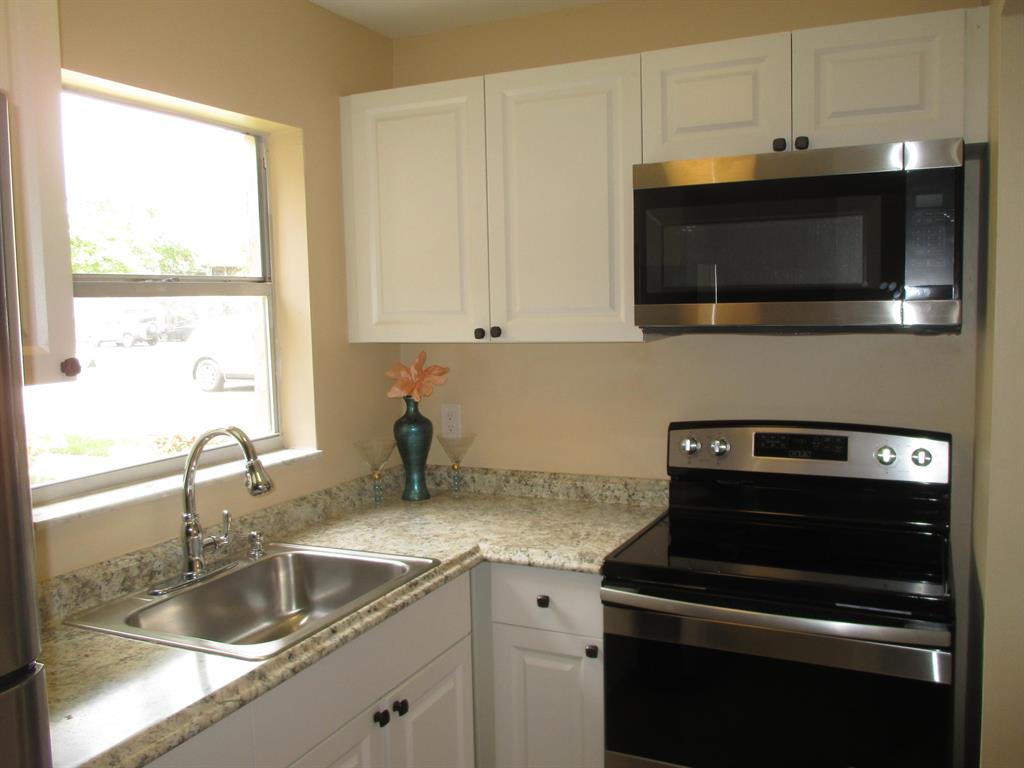 REMODELED first floor 1/1, all tile floors, no popcorn ceiling, washer/dryer hook up installed. All New SS appliances. New A/C & W/H. Screened patio & LR/BR windows face North. No dogs except service dog but two indoor cats OK. Guard gated active 55+ community. Courtesy Bus to grocery, shops and malls two days a week. On site manager and full time social director schedules shows, trips, social events. Come Discover Golden Lakes Village.