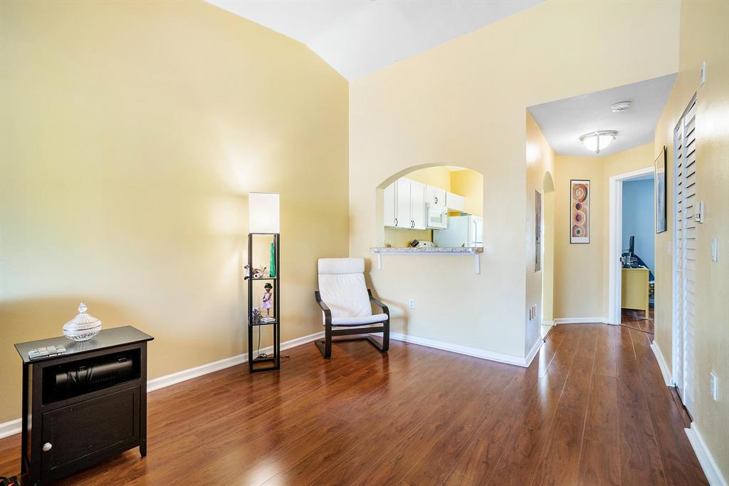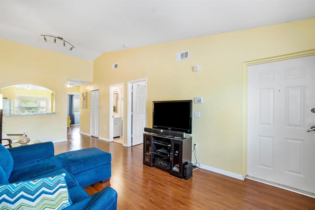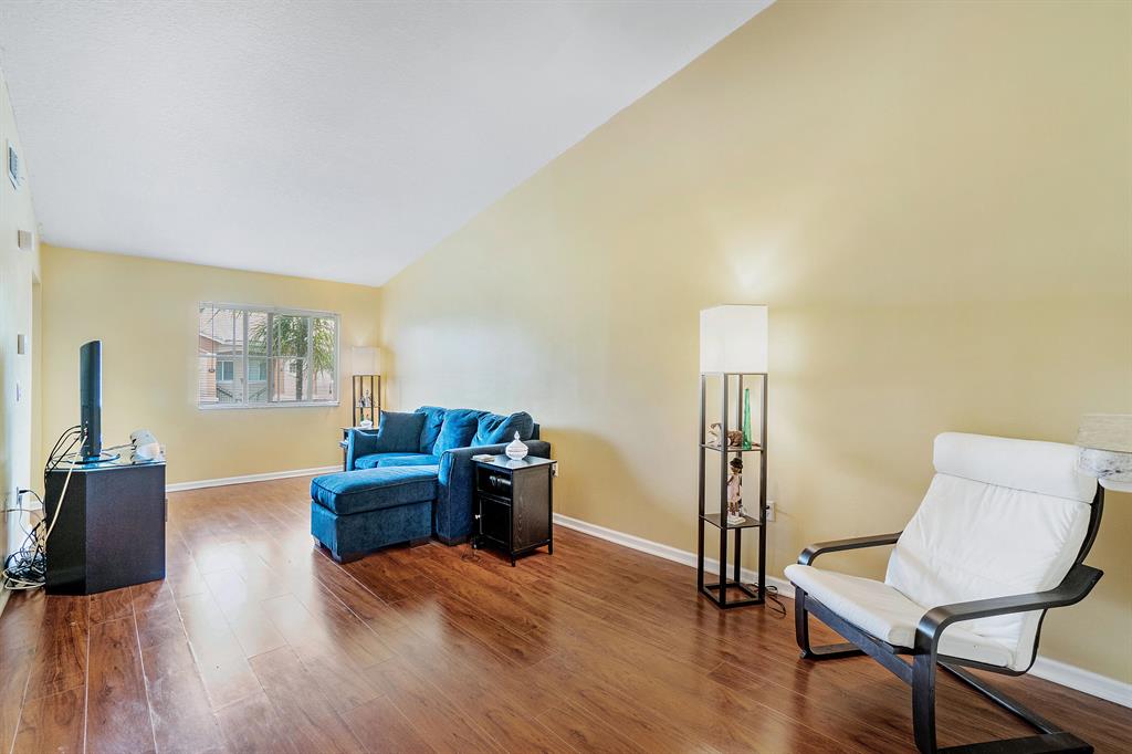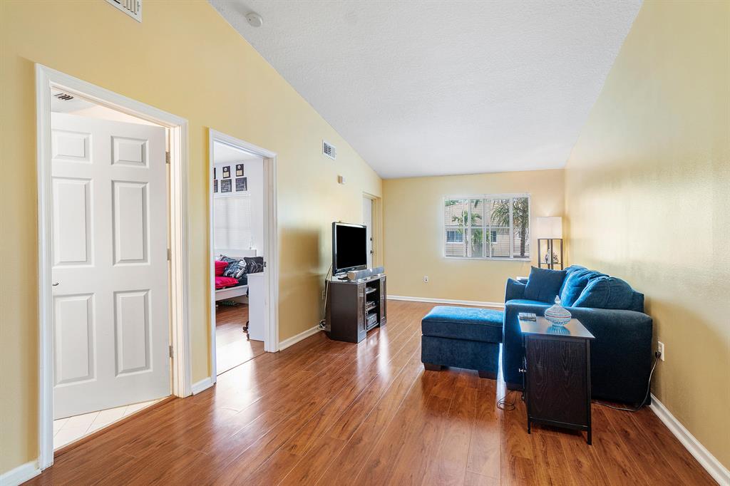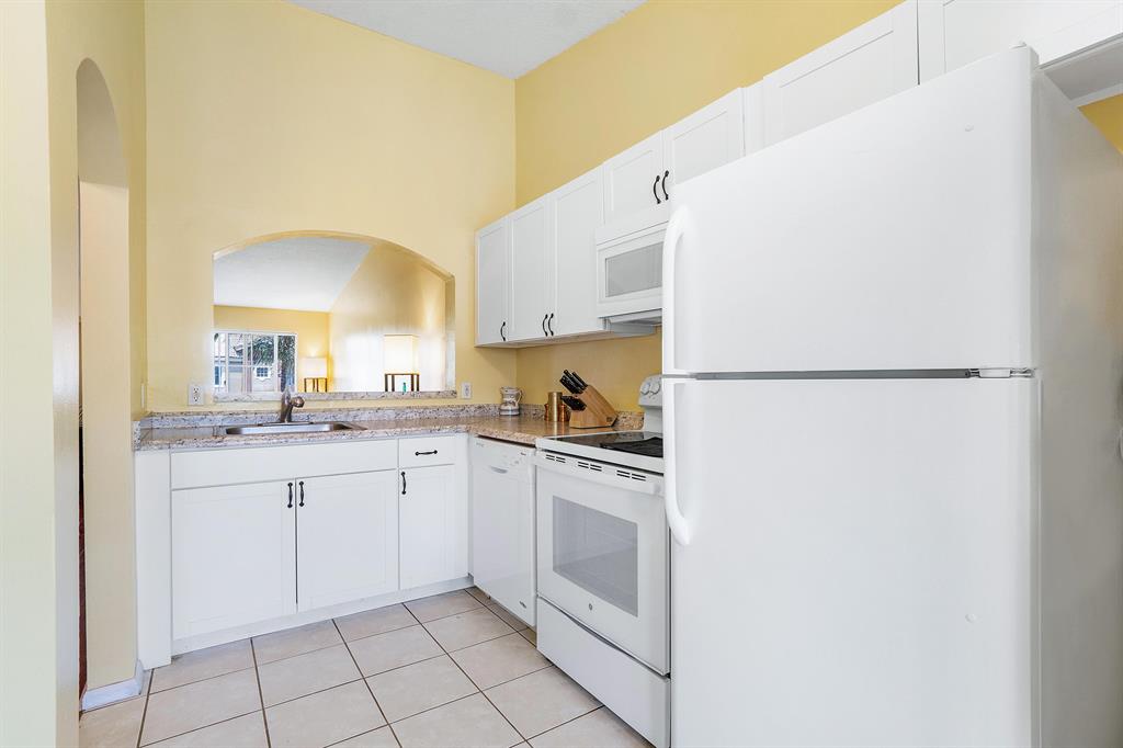 Stylish, updated 2 bedroom, 2 bath condo with newer appliances, kitchen cabinets, bathroom vanities and wood floors throughout (laminate). The cathedral ceilings provide a spacious yet cozy feel to the unit. Large master bedroom and kitchen overlook a tranquil park like setting. Centrally located - close to I-95, Turnpike and 441, it's also within walking distance to Grassy Waters Elementary and Jeaga Middle Schools. A private Clubhouse, two community pools and playground are available. Monthly fee covers water, sewer, trash removal, exterior maintenance (including roof) and landscaping. Two pets are allowed. No application or approval required by the association.