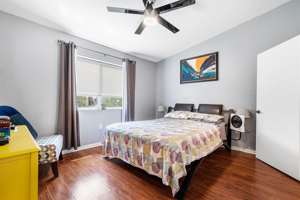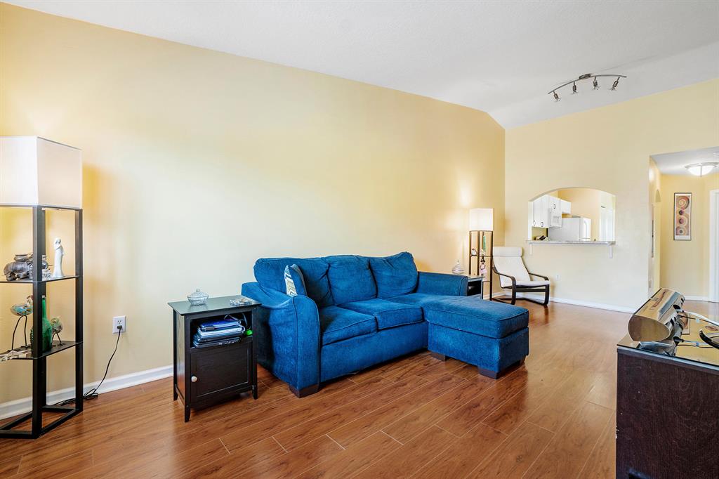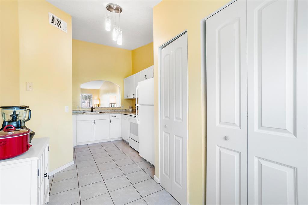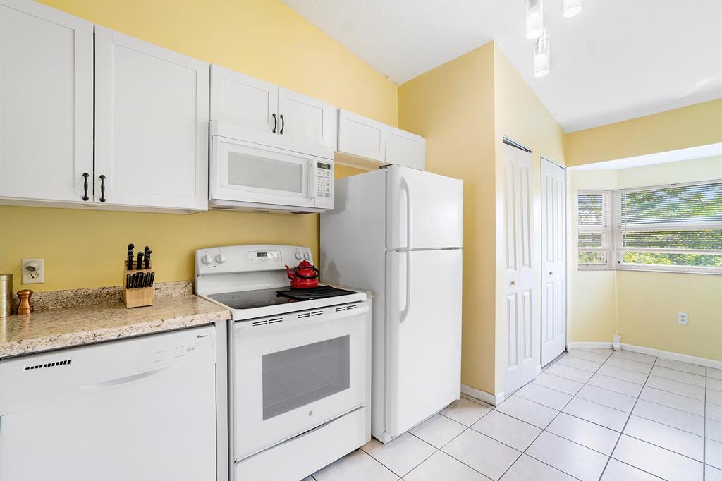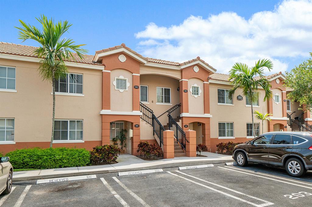 Stylish, updated 2 bedroom, 2 bath condo with newer appliances, kitchen cabinets, bathroom vanities and wood floors throughout (laminate). The cathedral ceilings provide a spacious yet cozy feel to the unit. Large master bedroom and kitchen overlook a tranquil park like setting. Centrally located - close to I-95, Turnpike and 441, it's also within walking distance to Grassy Waters Elementary and Jeaga Middle Schools. A private Clubhouse, two community pools and playground are available. Monthly fee covers water, sewer, trash removal, exterior maintenance (including roof) and landscaping. Two pets are allowed. No application or approval required by the association.