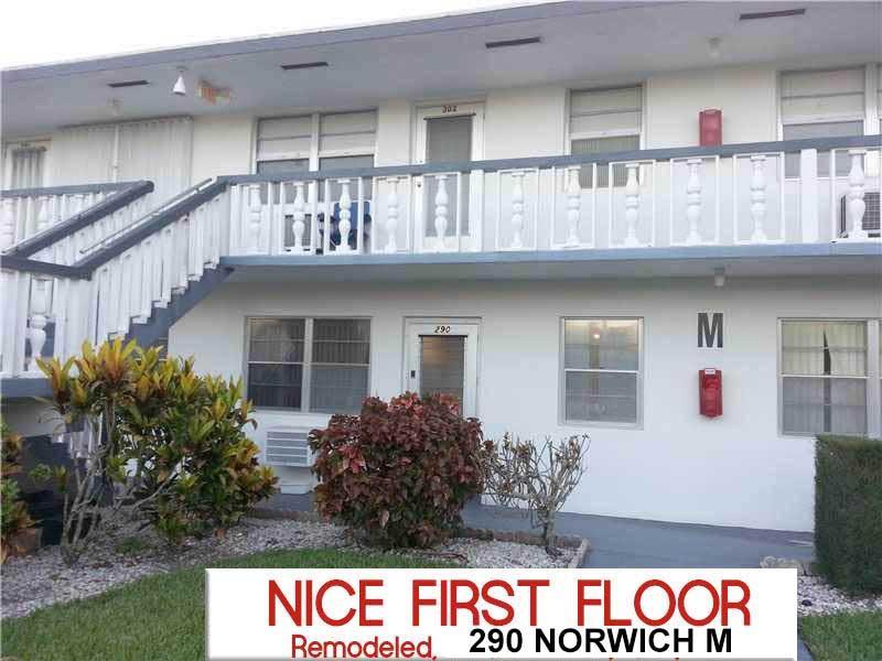 Century Village 55+ First floor .. Parking space a few steps from the front door. Apartment in move in condition. Clean kitchen, 2 Bedrooms, 1 full bath and 1 half bath. Lots of amenities and services provided form the association such as sailing, bocce, dancing, bus transportation, pool, gym, exercise classes, group activities,