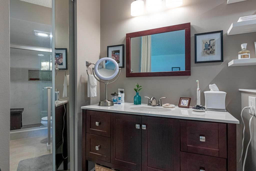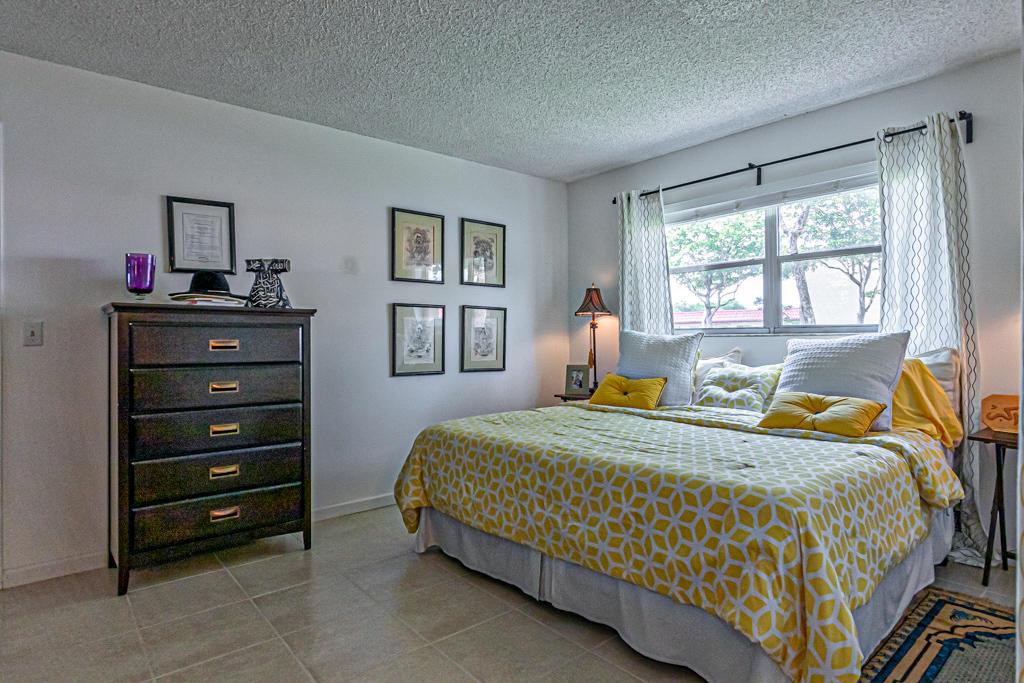 1st floor 2 Bedroom, 2 Bath Condo that has been completely updated. This unit comes with the most amazing water view. Completely tiled throughout. Kitchen features high end cabinetry, new stainless steel confection oven, stainless french door refrigerator and a large pantry. Each bedroom comes with its own spa like bath. Master bath features carrara marble tile with custom shampoo niches and upgraded shower fixtures. Master bedroom has an enormous walk in closet. Second bedroom/bath has a walk in shower featuring subway tile and a built in shower seat. New A/C installed 11/2017. Come enjoy your new active lifestlye in this amazing condo. Golden Lakes features pools, jacuzzis, tennis, saunas, gyms, auditorium, card/game room, billiard rooms, library, computer room and much more.