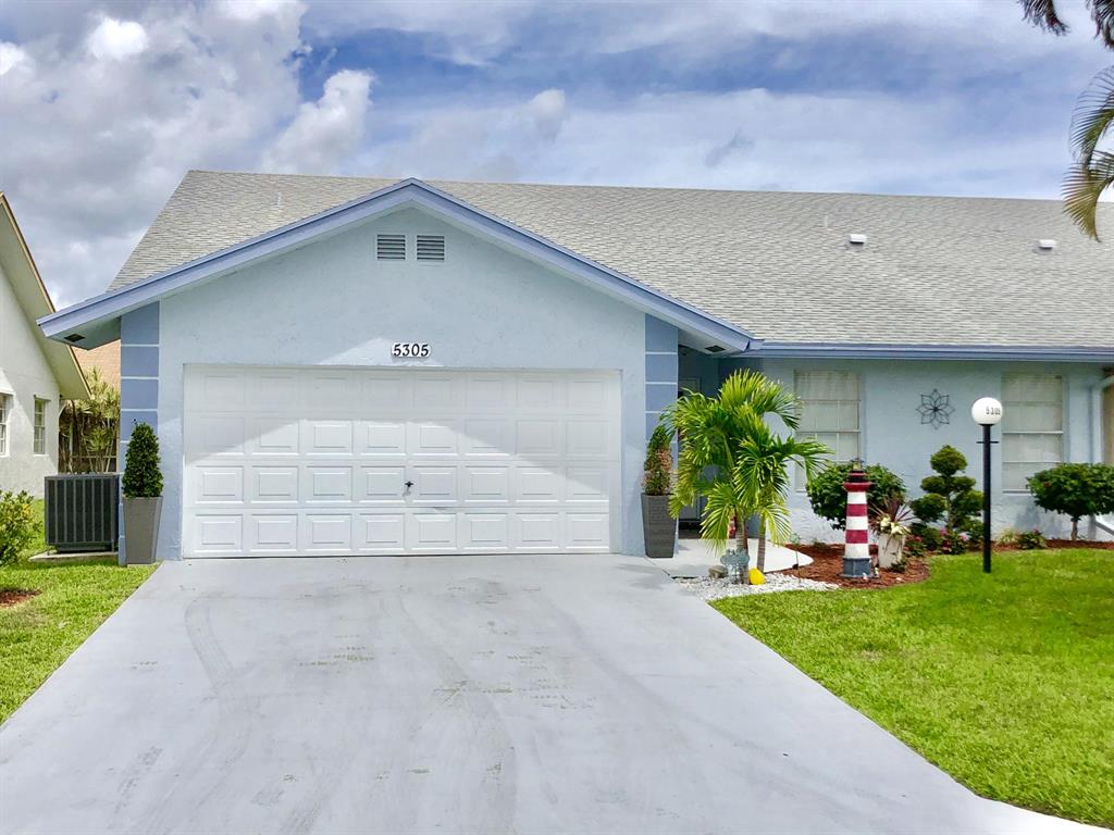 Rare villa with 2 car garage located in coveted Cypress Lakes, in West Palm Beach! This extremely spacious 2/2 floor plan with a large den and vaulted ceilings has the feel of a single family home, complete with screened in porch and paver patio. Cypress Lakes is an active, guard gated 55+ community with endless amenities including a community golf course, heated pool, hot tub, sauna, fitness center, shuffleboard and clubhouse all available with no membership fees! This residence is a great find and perfect for part-time and full-time residents alike.