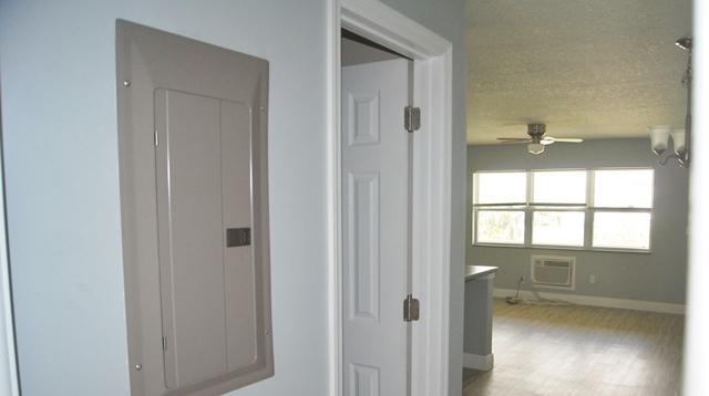 RENOV FROM THE BEAMS, CAN BE RENTED 1ST DAY OF OWNERSHIP. NOTHING MISSED HERE. NEW KITCHEN, LAMINATED FLOORS. NEW 100 AMP ELECTRIC NEW 2 AIR CONDITIONERS WITH HEAT, WALK-IN SHOWER, TILED, NEW TINTED IMPACT WINDOWS, IMPACT DOOR. SHOWER IN BATHROOM. UNFURNISHED. RECESSED LIGHTING IN LIVING ROOM AND KITCHEN. KNOCK DOWN OPEN KITCHEN NEW SCREENED PATIO ALL HAVE BEEN PERMITTED. NEW HOT WATER HEATER, NEW PLUMBING, CORIAN KITCHEN COUNTERS. ONLY STEPS TO EAST GATE AND CLUBHOUSE. BEAUTIFUL MUST SEE. MUST BE 55+ NO PETS.