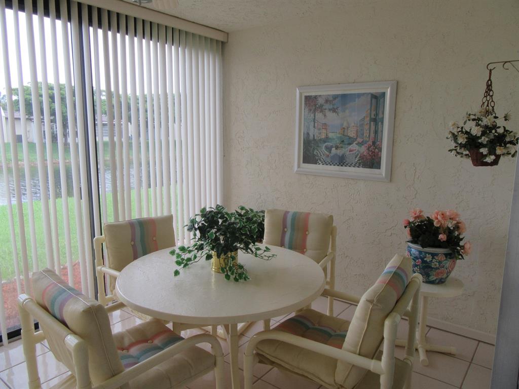 END VILLA, SPACIOUS FLOOR PLAN W/ EXTRA LARGE GLASS ENCLOSED PATIO UNDER AIR W/ UTILITY CLOSET FOR WASHER & DRYER & STORAGE. BEAUTIFUL WATER VIEW ! A/C RECENTLY REHAB'D. ALL HAS BEEN SEASONAL & GENTLY USED WITH ORIGINAL OWNER'S. BEING SOLD AS/IS & TURNKEY. NEW ROOF WAS JUST FINISHED JULY 2018 ! FRONT PORCH/COVERED ENTRY CAN BE SCREENED ENCLOSED IF WANTED. PARKING RIGHT IN FRONT OF VILLA! GREAT LOCATION! A SHORT WALK TO LK SUSAN POOL & BUS STOP ACROSS THE STREET. HAS EXTENDED CABLE & WIFI INCLUDED IN THE HOA .GUARD GATED COMMUNITY, 2 CLUBHSES, HEATED POOLS & SPA HOT TUBS, GYMS, TENNIS, CAFES FOR BREAKFAST & LUNCH. TWO ACTIVITIES DIRECTORS TO KEEP YOU BUSY & HAVING FUN ! LOCATED CLOSE TO SHOPPING, RESTAURANTS & TURNPIKE ! AIRPORT & OCEAN A SHORT DRIVE AWAY ALSO ! PARADISE AWAITS !
