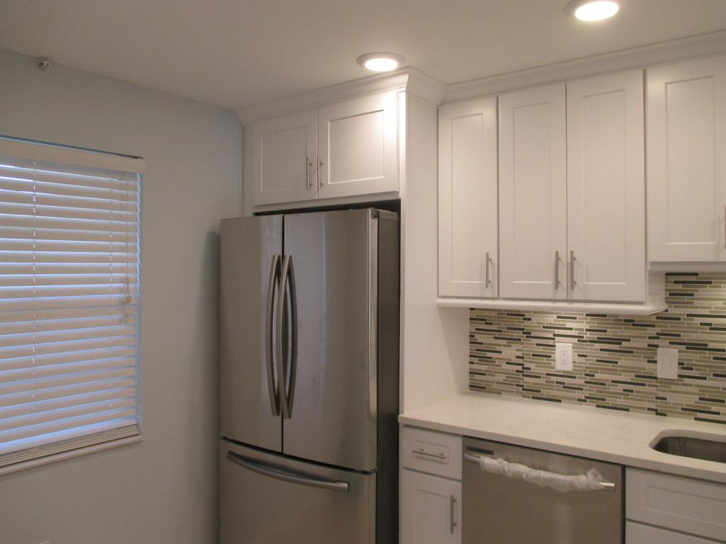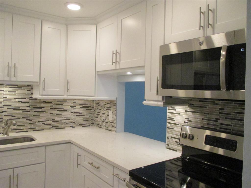 Beautiful newly renovated condo, never used., new kitchen & bathrooms. Quartz counters & back-splash, beautiful contemporary wood cabinets w/stainless pulls, lazy Susan & spice rack. Under cabinet lighting & hi-hats on dimmer switch. All new stainless steel appliances. Lg capacity French Door Refrig w/bottom freezer. New porcelain 20x20 tile floors throughout condo. Two new Kohler toilets & faucets. New wood vanities, new a/c installed 2017. a Water heater replaced 2016. Two spacious walk in closets. Enjoy the spacious waterview from scn patio w/desirable N/S exposure. Great location & just one block walk to Clubhs. Close to Lk Nancy satellite Pool. Active 55+ gated comm with 24/7 guard gate. Full time social director schedules shows, trips, movies etc. Come Discover Golden Lak