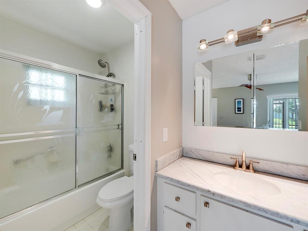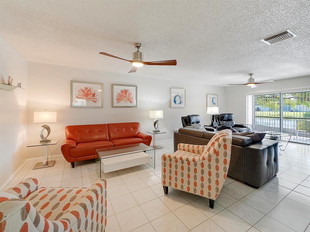Spacious and well maintained waterfront 2 bedroom, 2 bath single story villa in the guard gated 55+ community of Golden Lakes. This home features an open floorplan with a fully remodeled kitchen, impact windows, tile floors, custom ceiling fans and light fixtures, large dining room, large screened porch that overlooks the lake and newer front load washer/dryer. Easy access to Okeechobee, Turnpike, Airport, West Palm, Shopping and Dining.