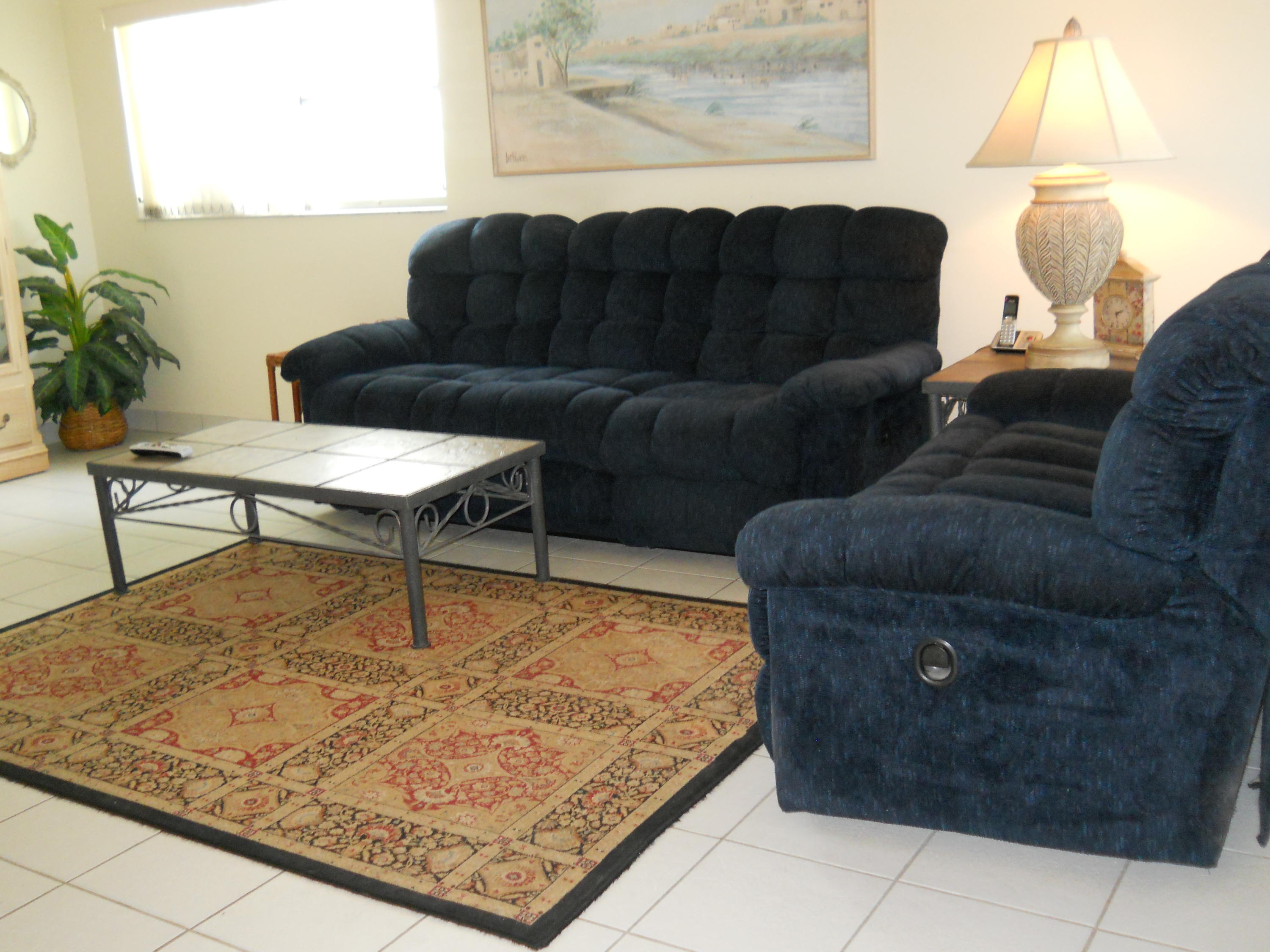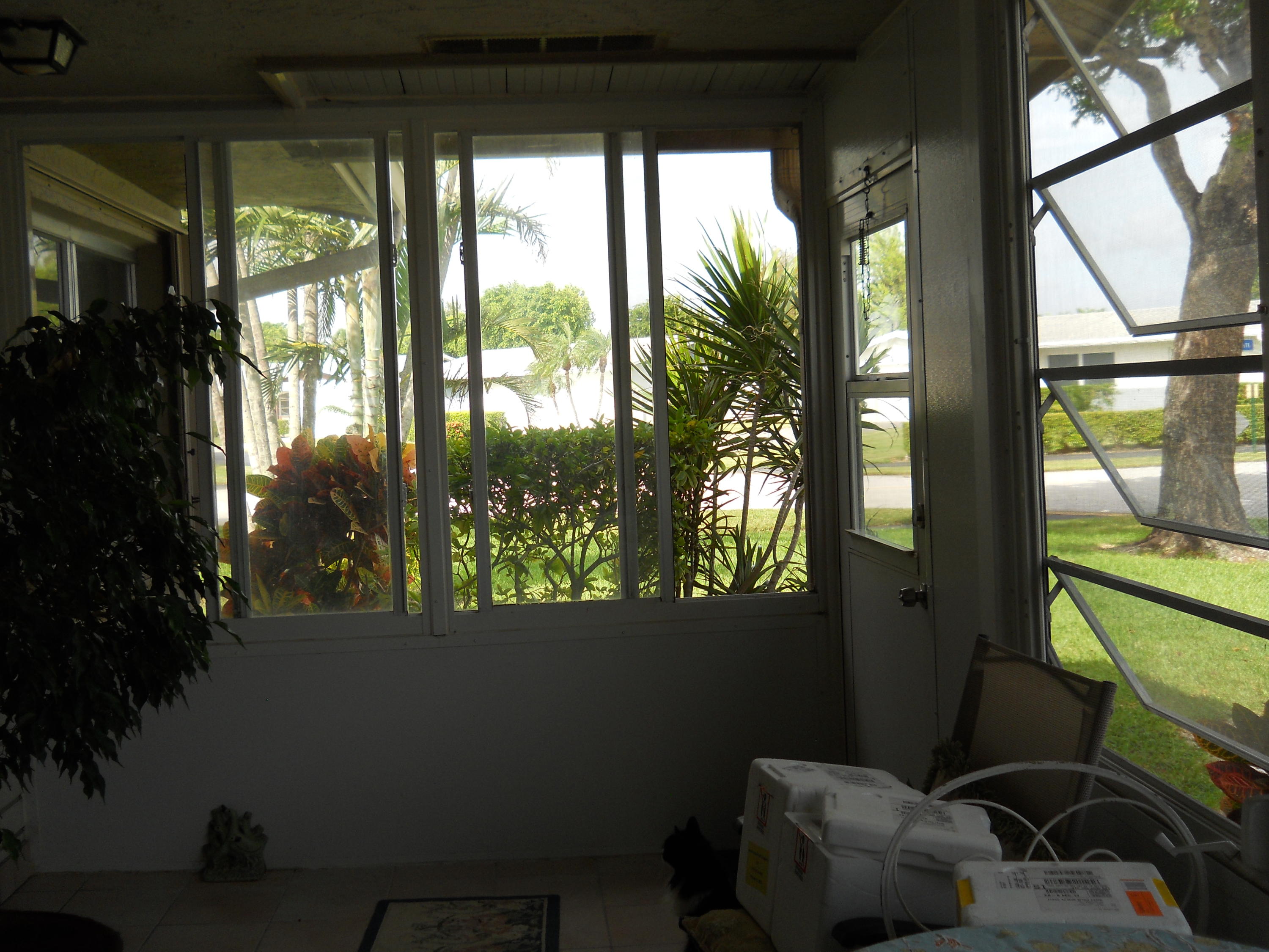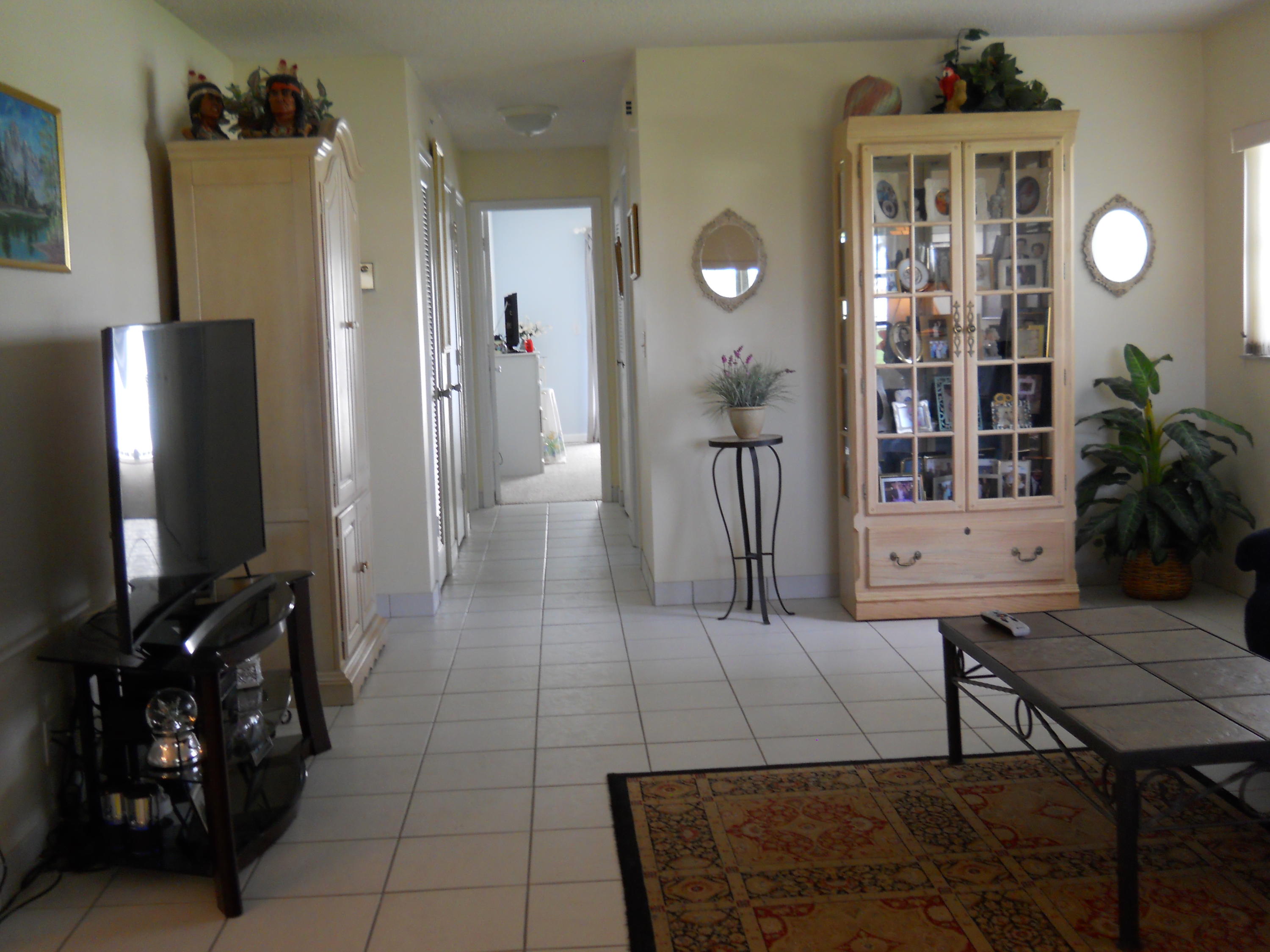 End unit, 3 exposures, roof 2004, tiled patio & interior, BR's carpet, a/c 2012, windows @ patio, bath updates. Accordion shutters & panels @ sliders.Back ground & criminal checks; $75. ea. or for married couple 1. May not rent out for 2 yrs. of ownership. 20# max. @ maturity for animal. Driveway parking for 2 vehicles. Golf/Tennis/Shows/Bingo/Sauna/Library,Game Room/Line Dancing & more. Satellite t.v., group prices for internet - all above in maintenance fees; (fee for shows); 2 movies a mo. no charge. Lots of clubs to join. Close to Post office/grocery/gas etc.