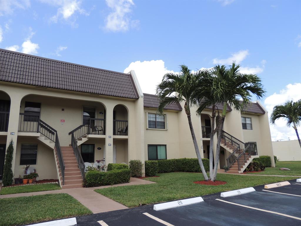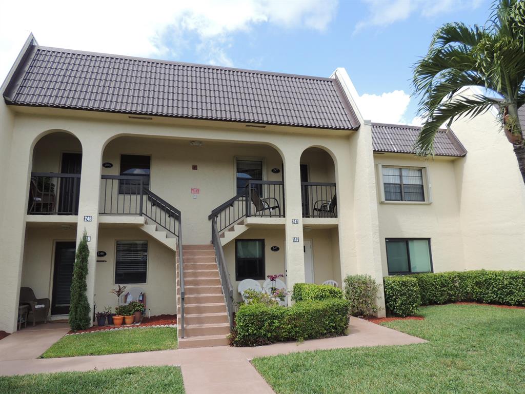 Immaculate unit with redone kitchen. Neat, clean and move in ready. Second floor location for extra privacy. Just steps from satellite pool and a very short walk to Phase B clubhouse and all the amenities! Washer/Dryer in utility closet, stainless steel kitchen appliances, newer a/c unit, accordion hurricane shutters, bright and airy design, pretty rear porch overlooking canal with extra storage closet and more! Come see this great unit today and view all that Golden Lakes has to offer the active senior! Several pools, spa, tennis, shuffleboard, cafe serving breakfast and lunch, even a social director who plans activities! Gated community convenient to shopping and the turnpike, not far from beaches and PBIA. Call today!