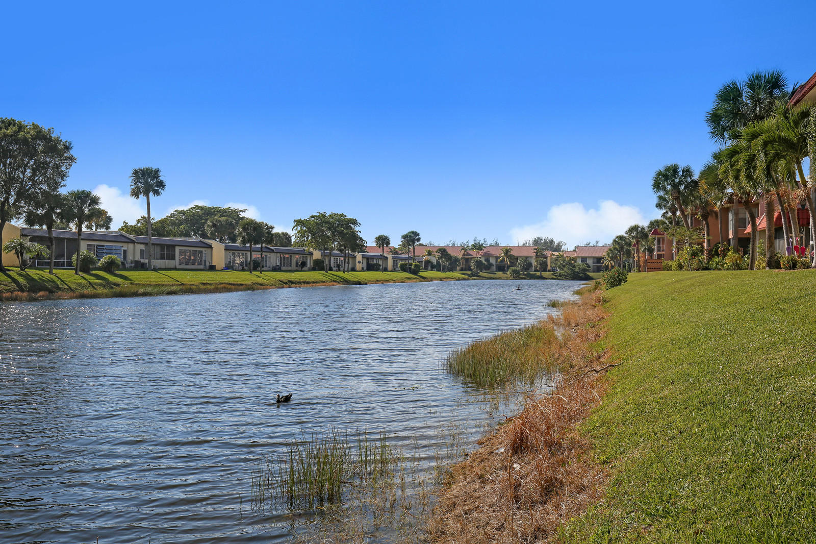 Come see this Golden Lakes Gem! This second floor unit offers lovely, serene water views! Offered furnished, this condo has it all. Tile floors in the living area, offer a crisp look with little maintenance needed. The appliances and air conditioning unit have all recently been replaced. Washer and Dryer have been installed as well, giving a full laundry room feel! All of the electric has also been redone in the unit up to current code, including breaker box and outlets. The bathrooms have been nicely kept, updated and maintained. New outdoor carpet on the patio along with full, covered front patio, fully compliments this home! Do't miss this cared for home in one of the premier active adult communities of the Palm Beaches!
