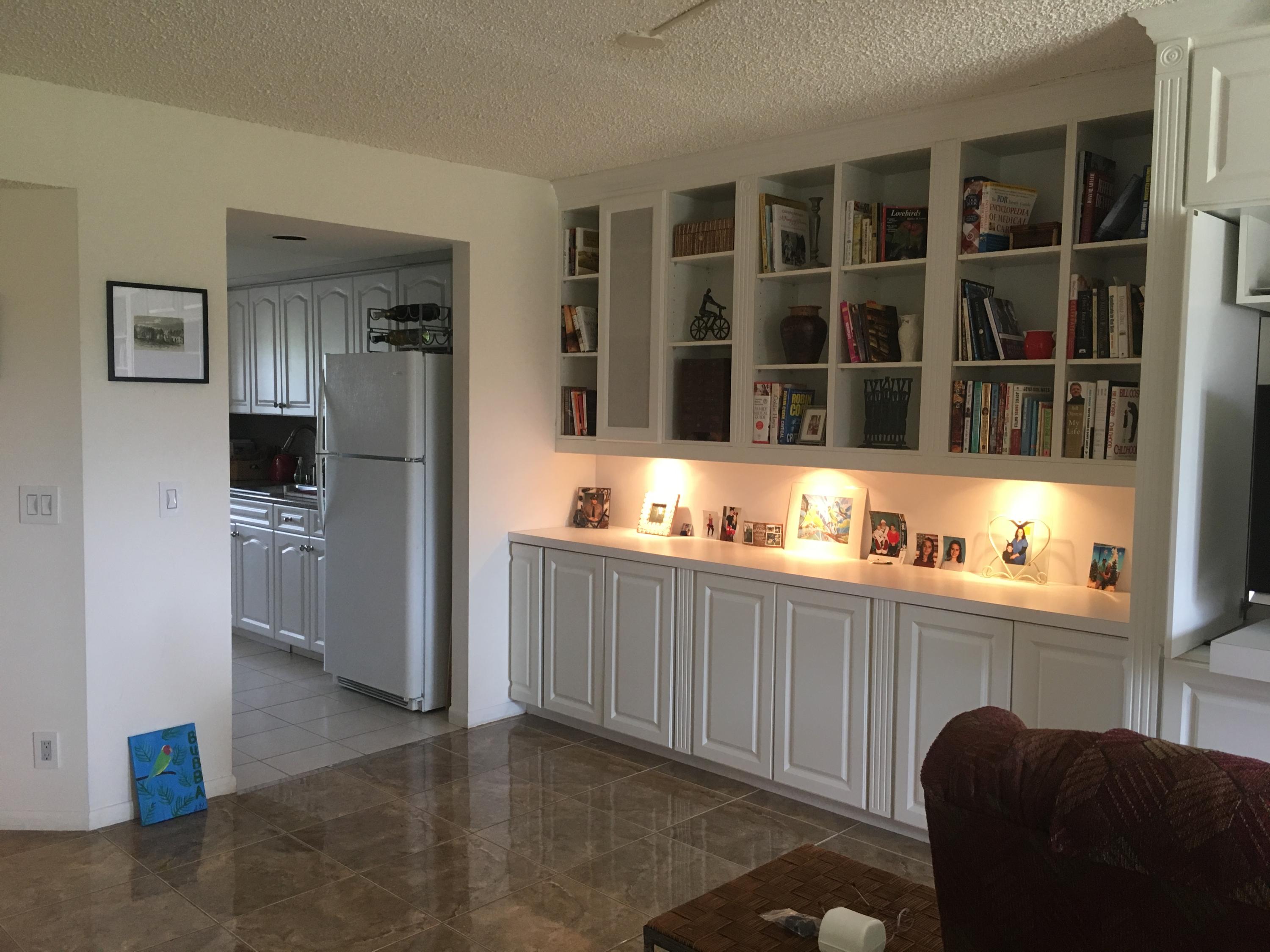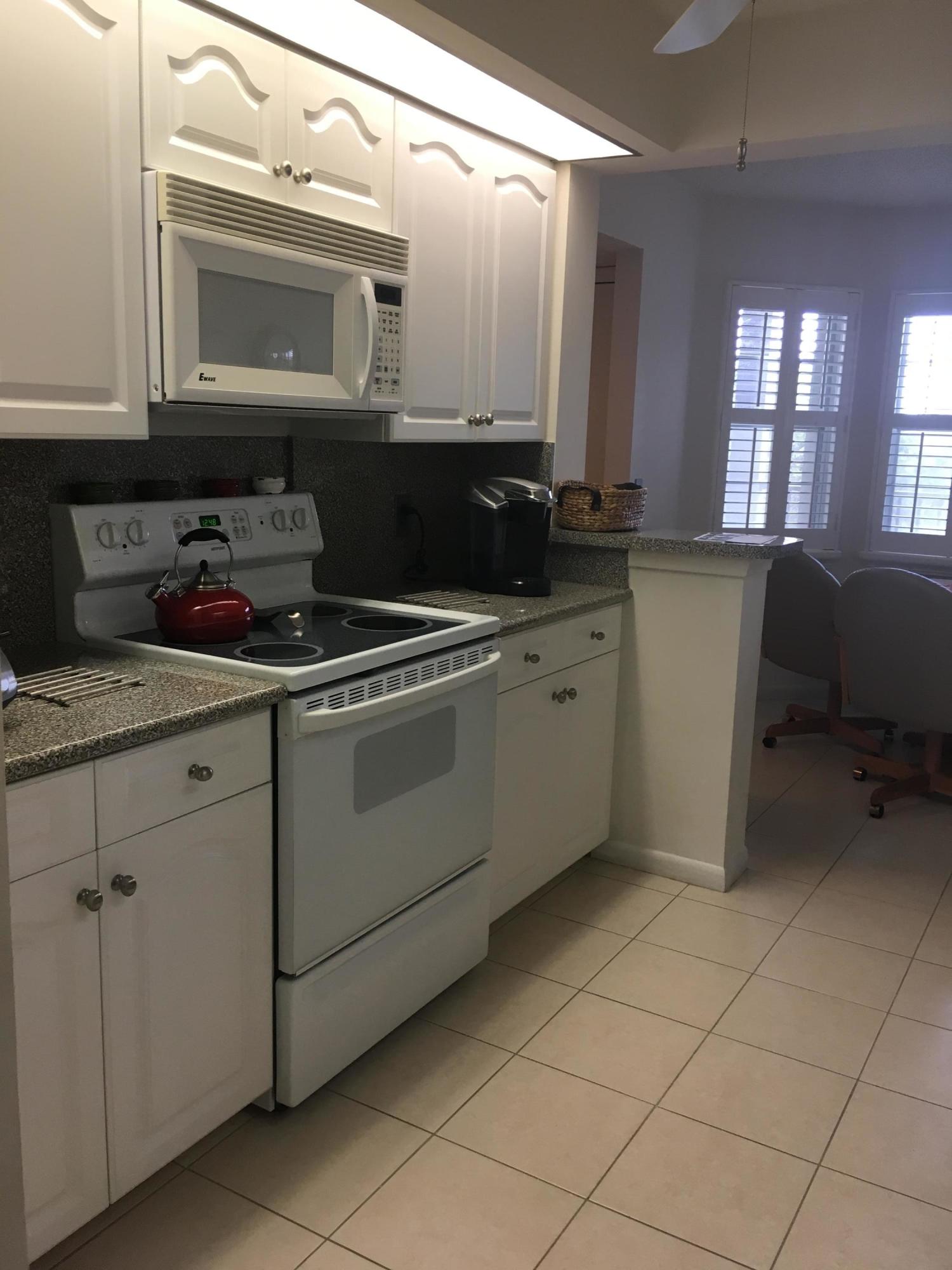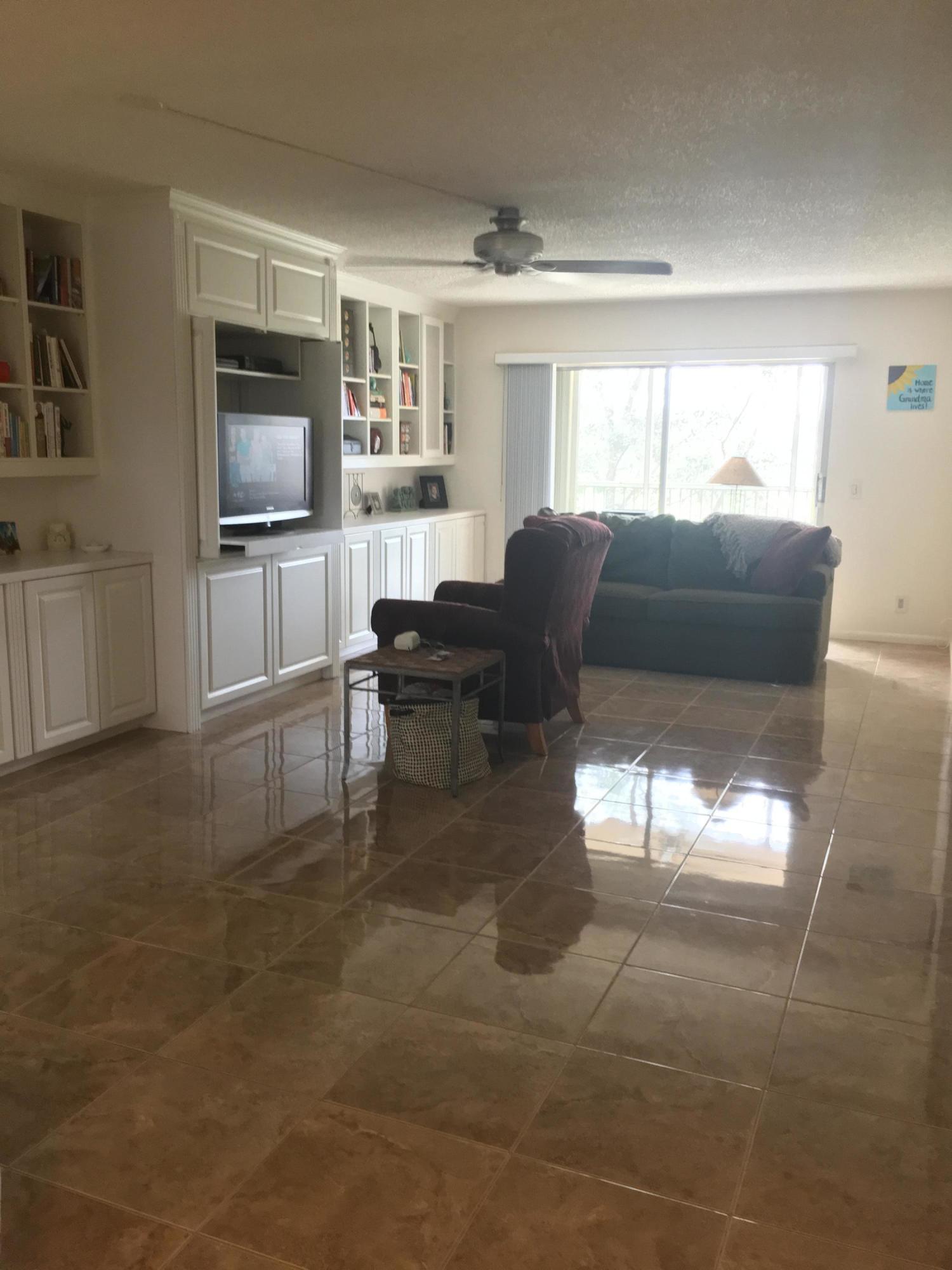 MUST SEE FOR YOURSELF! This furnished 2/2 Karanda model condo with beautiful views overlooking golf course. This condo offers beautiful custom built-in cabinets and bookcase along living room wall, porcelain tile in main living areas, privacy screen, plantation shutters for the two front windows, accordion hurricane shutters, and tankless water heater. And the amenities! You don't even have to leave the community. Come enjoy all the wonderful amenities this 55+ GATED COMMUNITY offers from: golf, fitness center, tennis, swimming pools, 24hr security, pharmacy, medical center, theater, courtesy bus, ect... Also, seller will give $1,000 towards buyers floor allowance.