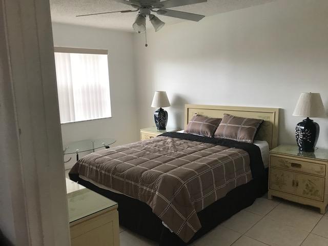 1st floor 2/2 split bedroom unit with all ceramic tiles, stacked washer & dryer, updated kitchen and bath cabinets, concrete patio out back, tankless water heater, and newer shower doors. Enclosed porch, close to clubhouse and front gate. 1.8 miles to turnpike, minutes to outlet, mall, Cityplace, and beaches.