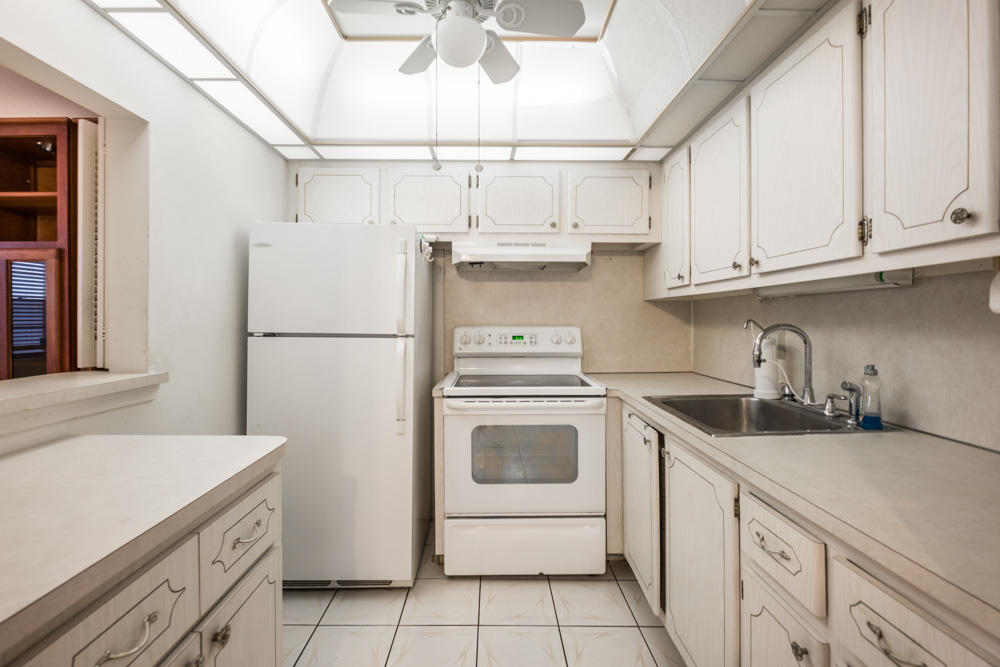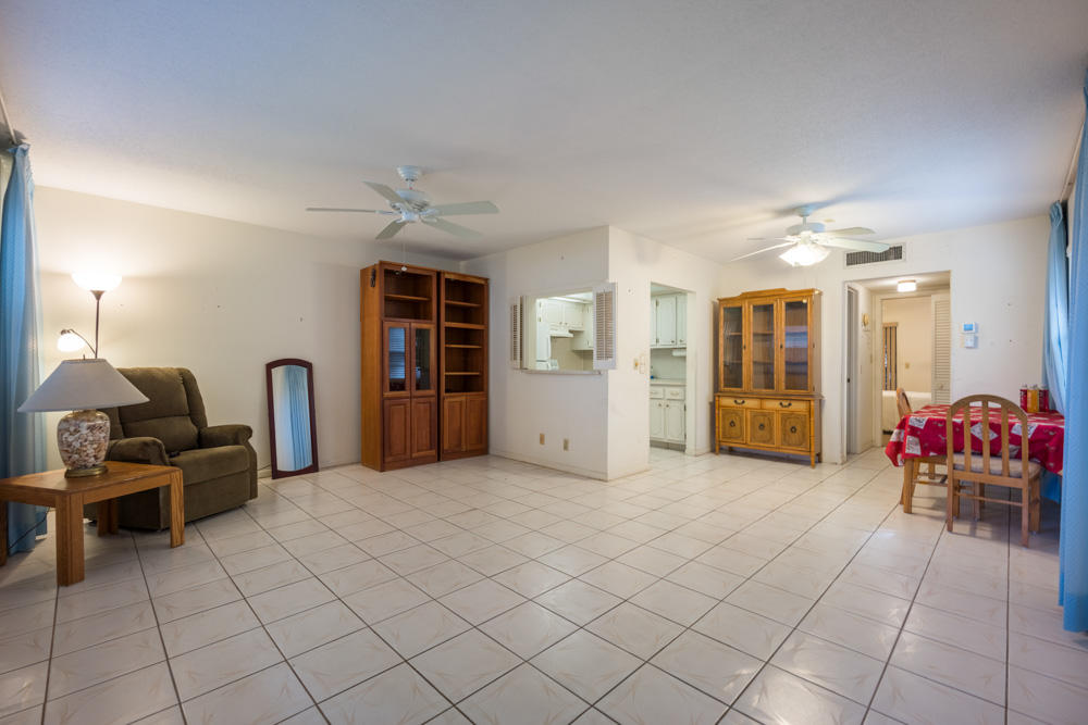 Bright & spacious, open plan, 1BR/11/2BA 1st floor condo located in the highly desirable, pet-friendly community of Century Village. This condo is in pristine original condition and has a large, wide-open, sunny & airy interior, oversized windows and sliding glass doors, neutral colors, tiled & carpeted flooring, a spacious master suite with ample storage, and a large kitchen with plenty of cabinet space. The expansive screened-in patio has stunning garden views. 2017 Central AC. Century Village is an active 55+ gated community. Amenities include a 92,000 sq ft clubhouse, 14 swimming pools, a state-of-the-art theater, a health club, on site medical building, numerous sports facilities, and multiple classes, social & creative activities, and clubs.