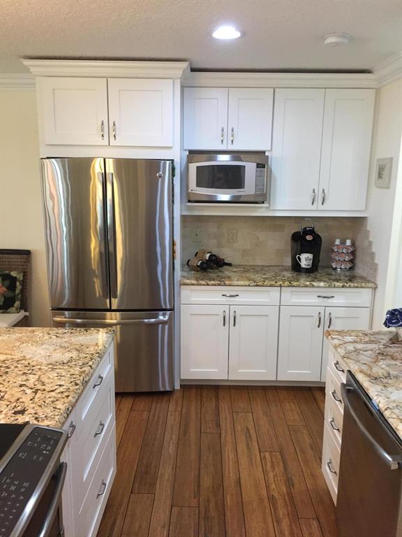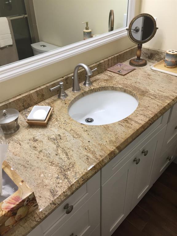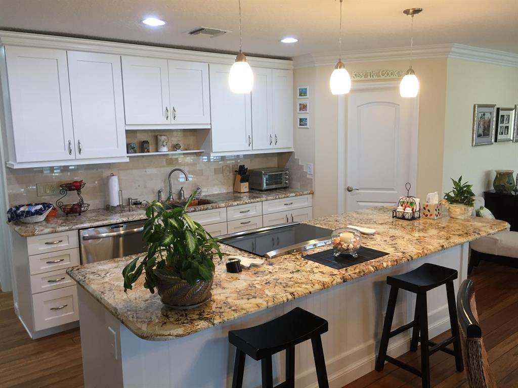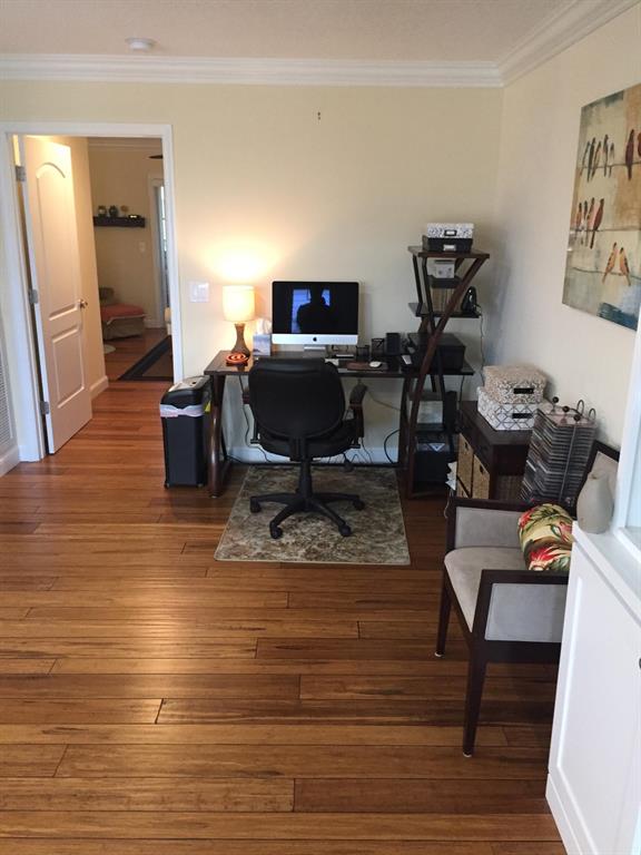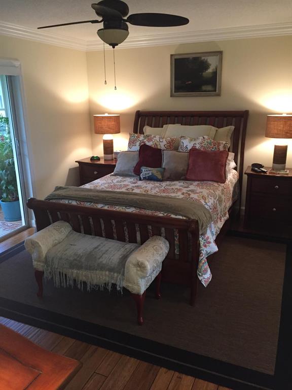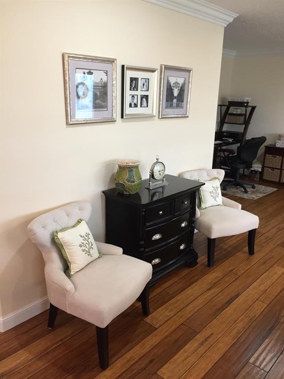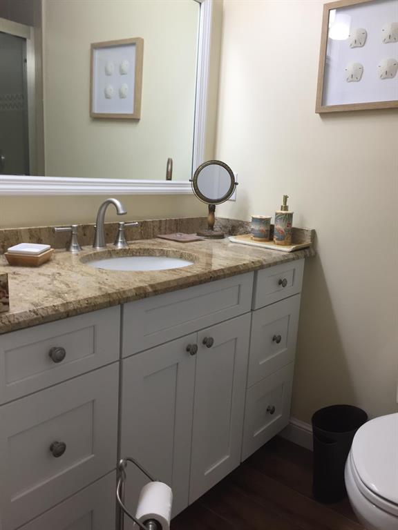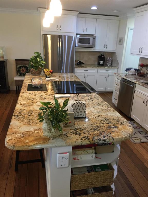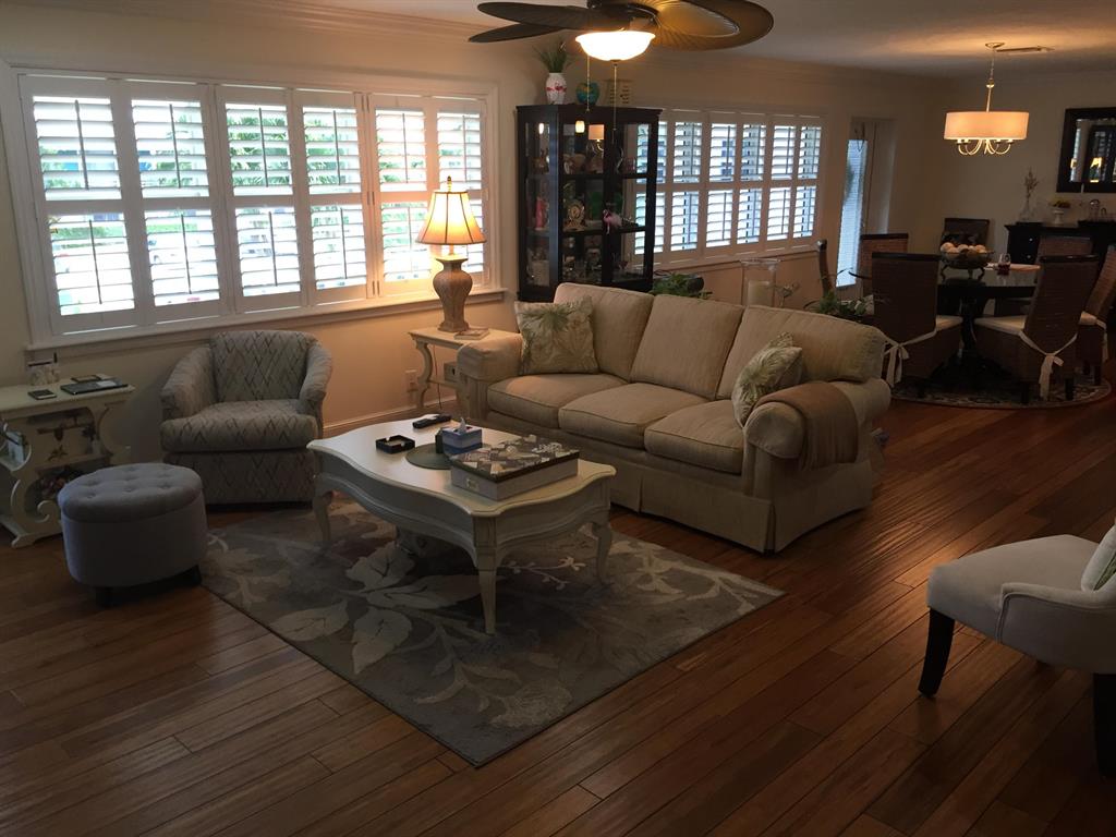 Meticulously redesigned joining of two contiguous units resulting in an architectural uniqueness of 1476 square feet not found anywhere else in Century Village. Flooring consists of hand scraped Bamboo hardwood flooring and ceramic tile, two walk-in master bedroom closets, Kitchen includes a cooking island with granite counters, stainless appliances, soft close sliding drawers, dishwasher, disposal plus a large pantry. Both Master Bedrooms have private direct entry balconies, walk in closets, plus water saving commodes. A/C and 40 gallon water heater less than 3 years old. Front windows are wind resistant with plantation shutters. Washer and dryer hook ups in the utility closet.