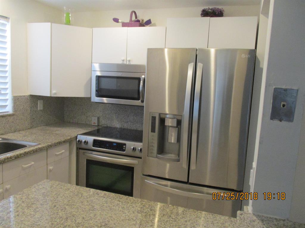 Great updated unit. Inside Corner, bottom floor, water view from front. All Tile floors, granite counter tops, semi-open kitchen, stainless steel appliances, and garbage disposal. Hurricane impact in all windows except patio, which has Hurricane shutters. Central A/C around 6 years old. A Great area, a great buy. Century Village is a 55+ community. 15 pools, gym, clubhouse.