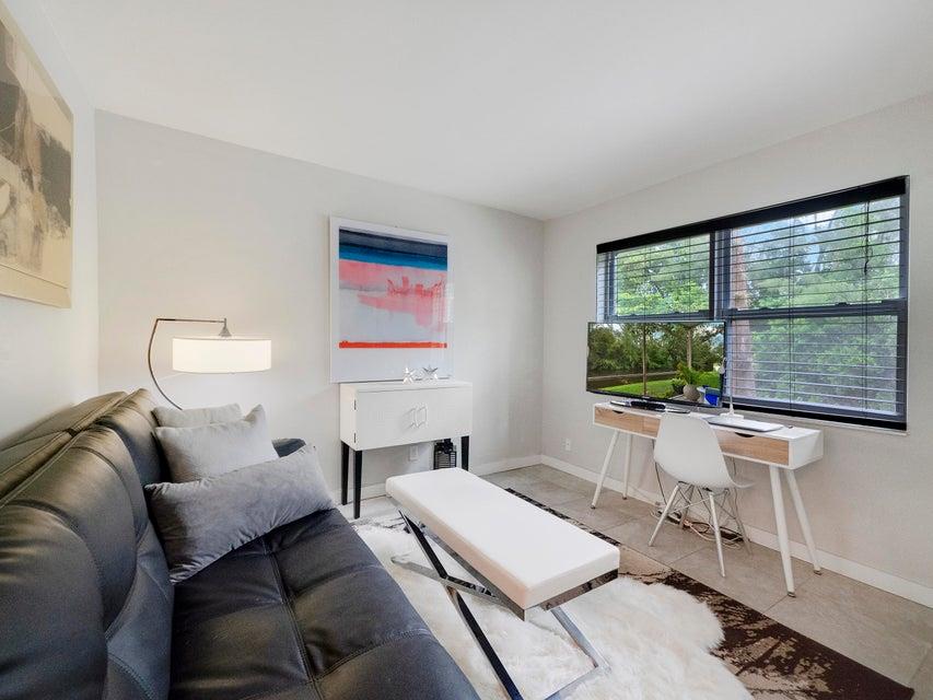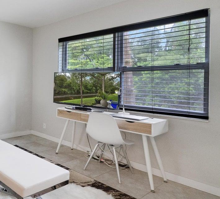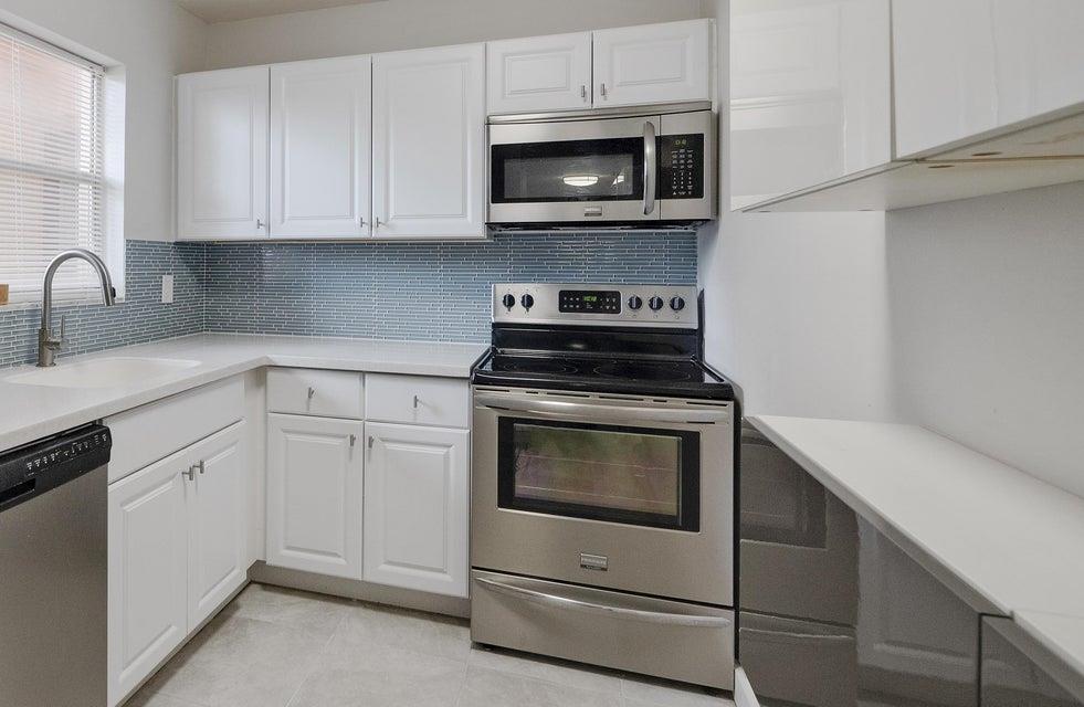 Beautiful remodeled first floor condo in the 55+ community of Golden Lakes. Fully updated Kitchen and Baths give this bright and airy unit a modern, contemporary feel. Features include sliding glass doors that open to the Spacious waterfront patio, Corian style counter tops, Newer cabinetry, Glass tile backsplash, Stainless Appliances, Impact windows, Washer/dryer in unit, Ceramic tile throughout, Modern fixtures, Modern lights and a Light color palette. Community features guard gated access, Community pool, Clubhouse and Tennis courts. Easy access to Turnpike, Wellington, Royal Palm, and Okeechobee Blvd.