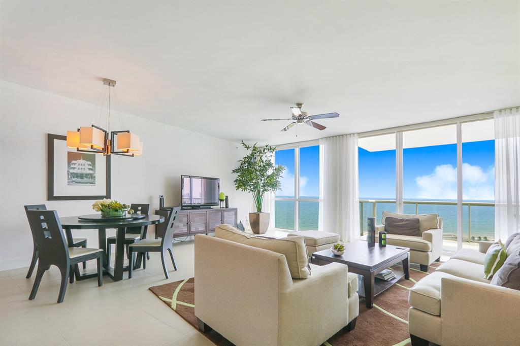 Luxurious 15th floor ''Steven G'' designer model ocean view sky residence with 2BRs/2.5BAs at the fabulous Plaza at Oceanside! Sold Turnkey ! Private elevator entry into the grand salon with living , kitchen and dining areas all perfectly designed to capture the spectacular ocean view. Immaculate condition ! Gorgeous unobstructed ocean views from your terrace ! High end furniture and designer finishes throughout. Gourmet kitchen with Poggenpohl European designed cabinetry, Viking stainless steel appliances and granite countertops. Expansive master suite also opens to the terrace with floor to ceiling glass sliders and has two walk-in closets and a luxurious bathroom with Roman tub and two sinks/vanities. The guest suite has a walk-in closet, full private bath and beautiful ocean views .