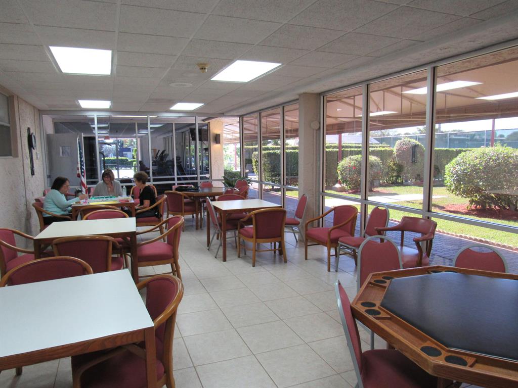 Lovely 1 Bedroom 1 1/2 Bath, 1st Floor Waterfront Condo ready to move right in. HOME WARRANTY INCLUDED WITH PURCHASE. Kitchen with granite counters and tiled backsplash. New laminate floors. Both bathrooms have been updated. Master bedroom has a huge walk in closet and bath has a walk in shower. Large utility storage closet with washer in unit, room to install a dryer. Spacious covered/screened patio that has roll down shutters. This unit is just steps from the Lake Meryl satellite pool. Golden Lakes is a 55+ active community that offers pools, jacuzzis, sauna, tennis, billiard room, library, clubhouse, card/game room, gym,cafe and much more. Close to shopping, restaurants and FL turnpike. Don't miss this one!