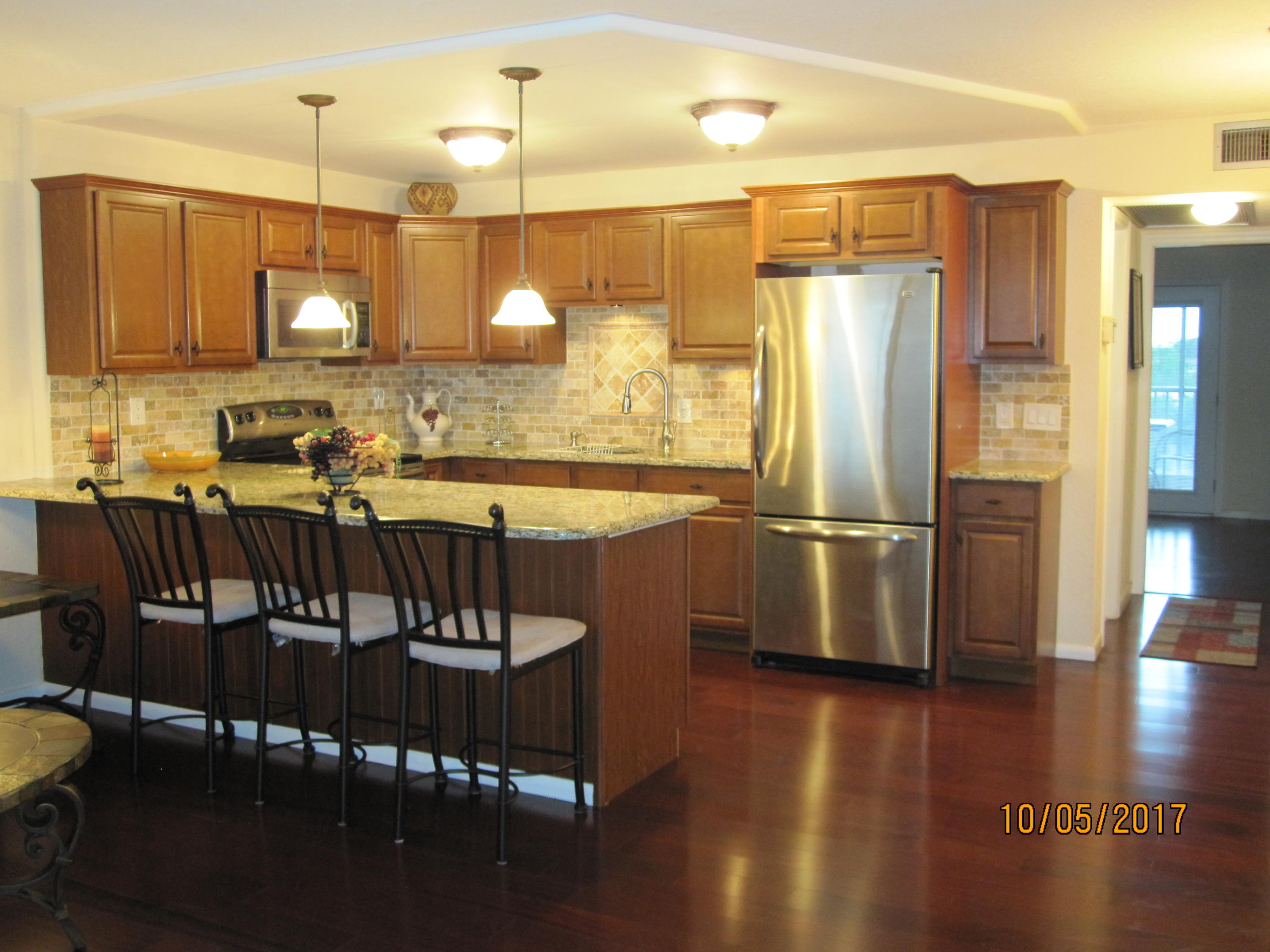 Priced to Sell!! ABSOLUTELY GORGEOUS WATERFRONT CONDO! Beautifully updated condo walking distance to the main clubhouse.Top of the line finishes incl Cherry Wood flooring throughout living area, wood blinds, Impact sliders on the screened in patio off the Master Bedroom,Impact french doors w/built-in blinds in Master, knockdown ceiling & walls. Updated kitchen features decorative tray ceiling, pendant lighting, Granite counters, Wood cabinets, Stainless Maytag appliances, Wine cooler, Marble back splash, LaZ Susan & under cabinet lighting. Patio overlooks serene lake & fountain. Patio flooring is light mexican tiles w/racoon prints. Both Updated Bathrooms include Marble walls, newer vanities & lighting. Master boasts ceiling fan, sconces,removable shower head & built in bench