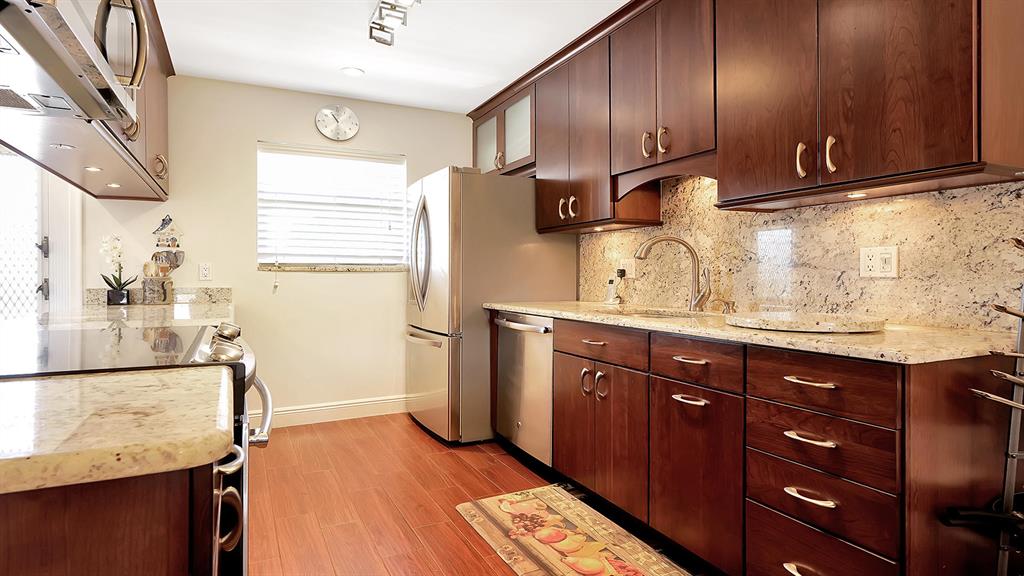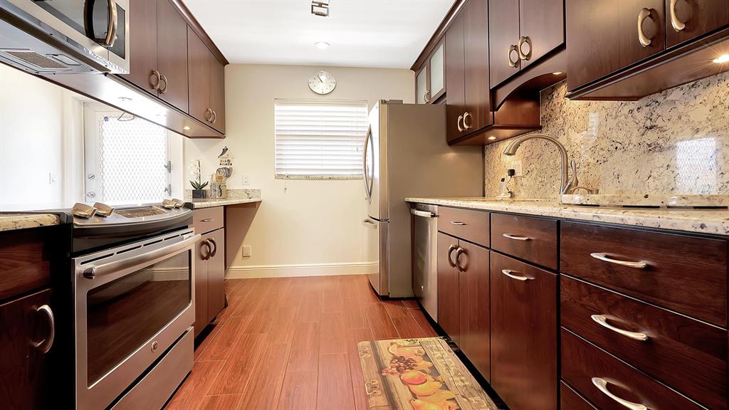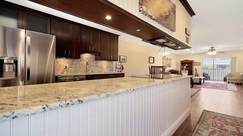 Welcome home! This flawlessly updated condo has it all! Come inside and enjoy spacious living areas along with an inviting kitchen which boasts custom wood cabinetry, granite counter tops and stainless steel appliances. All of the bedrooms are spacious as well with custom closest and this home offers a relaxing, covered balcony which provides the perfect outdoor living space. The home also has fresh paint, hurricane impact windows & washer/dryer. Live the resort lifestyle in Century Village where you can be as active as you want to be! This well maintained, active adult community offers its residents many amenities including a wonderful pool and clubhouse, lots of activities, clubs, dog friendly and much more. Century Village is conveniently located close to everything!