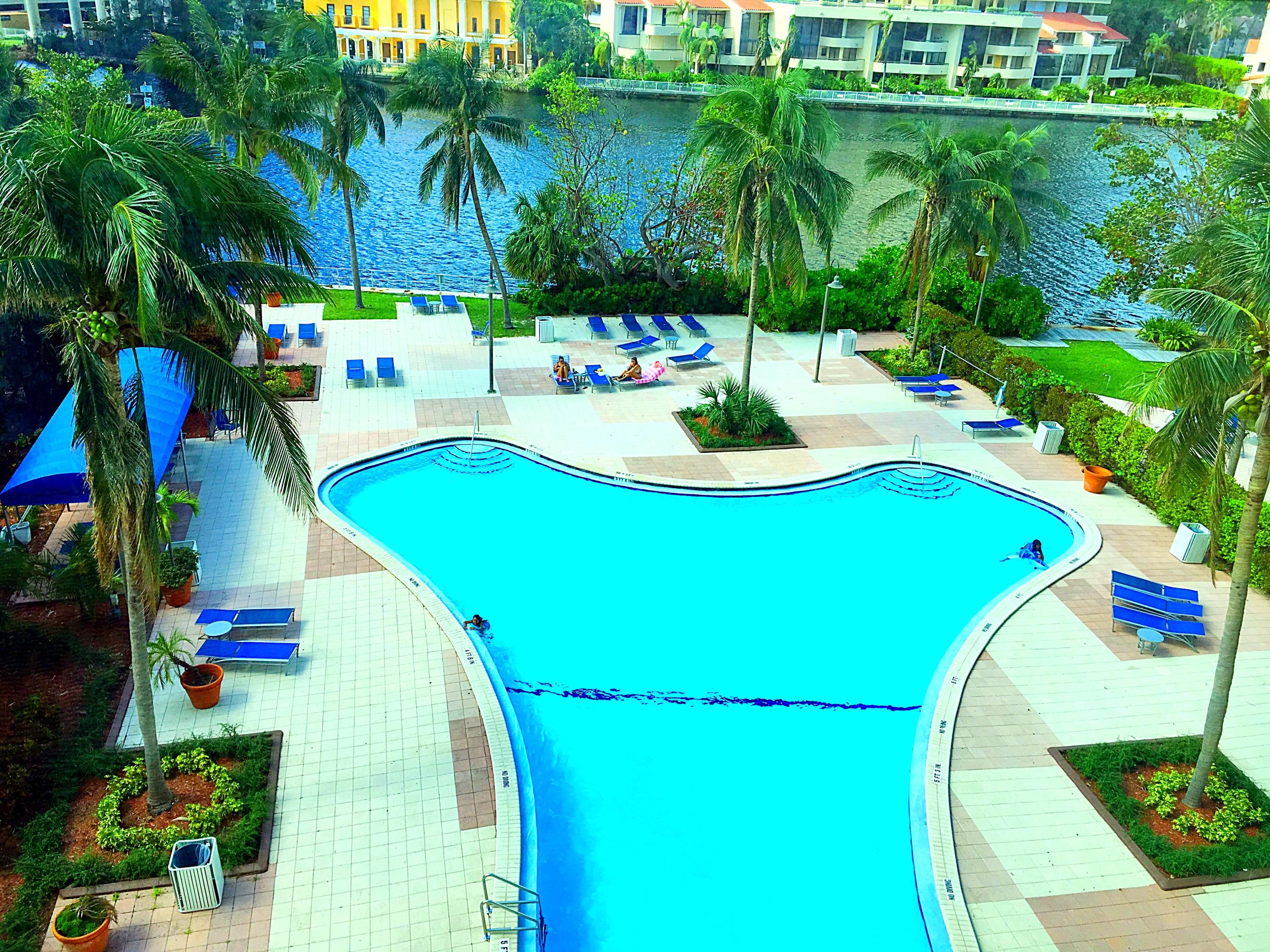 Amazing Intercostal Views! Renovated large 1 bedroom 1.5 bath condo in Oceanview building A located on the intercoastal. Totally redone modern open kitchen with new stainless steel appliances & granite countertops. The room overlooks a great room that looks out to a balcony with spectacular views of the city and inter-coastal waterways. Master bedroom suite has both his and hers walk in closets and large bath. building includes security ,totally renovated lobby, gym, clubhouse and a beautiful resort style pool. walk across the street to beaches. Easy to show.