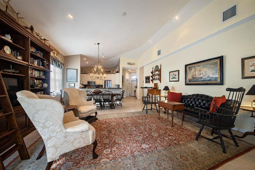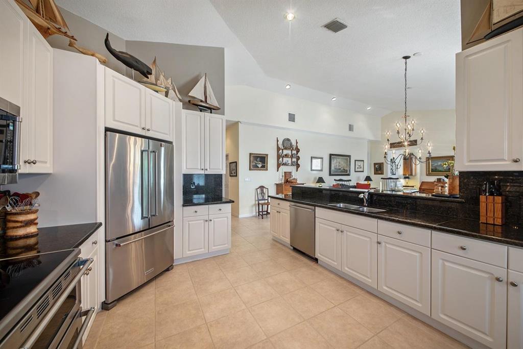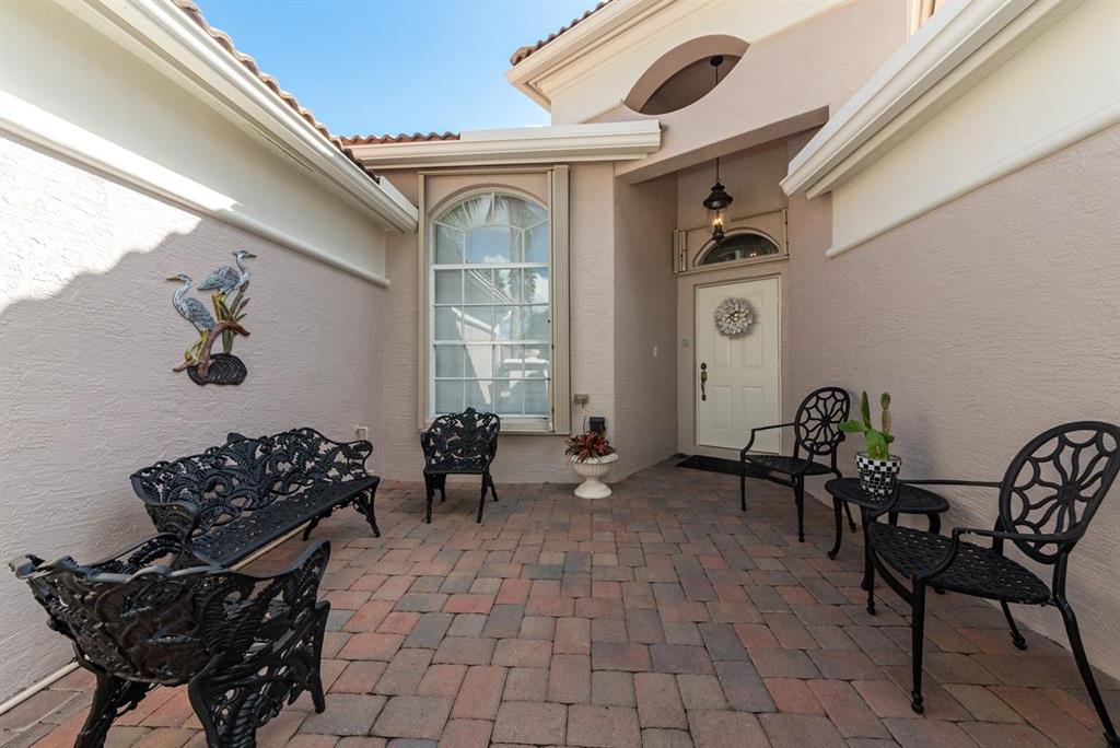 This is one GORGEOUS Villa in Cul De Sac!! no traffic noise! Accordion shutters on this Sunny, 2 bedrooms + Den. Oversized lot .18 acre, Present owner made Extra wide custom driveway, put in a backyard custom paved patio seating area, created an entire private with garden, partly fenced property, Rheem A/c =2011. Custom roller shades in enclosed patio seating area. Upgraded kitchen with granite + S/S appliances. HOA fee includes roof cleaning, exterior painting, basic Comcast cable, lawn maintenance, alarm monitoring. Complex has Tennis, Olympic pool, playground, security gate staffed 24/7, centrally located community. 10,000 sq.ft. clubhouse w/party room, prep-kitchen, manager on site. State of the art gym. No age restrictions. Pets OK. Private road to Publix.