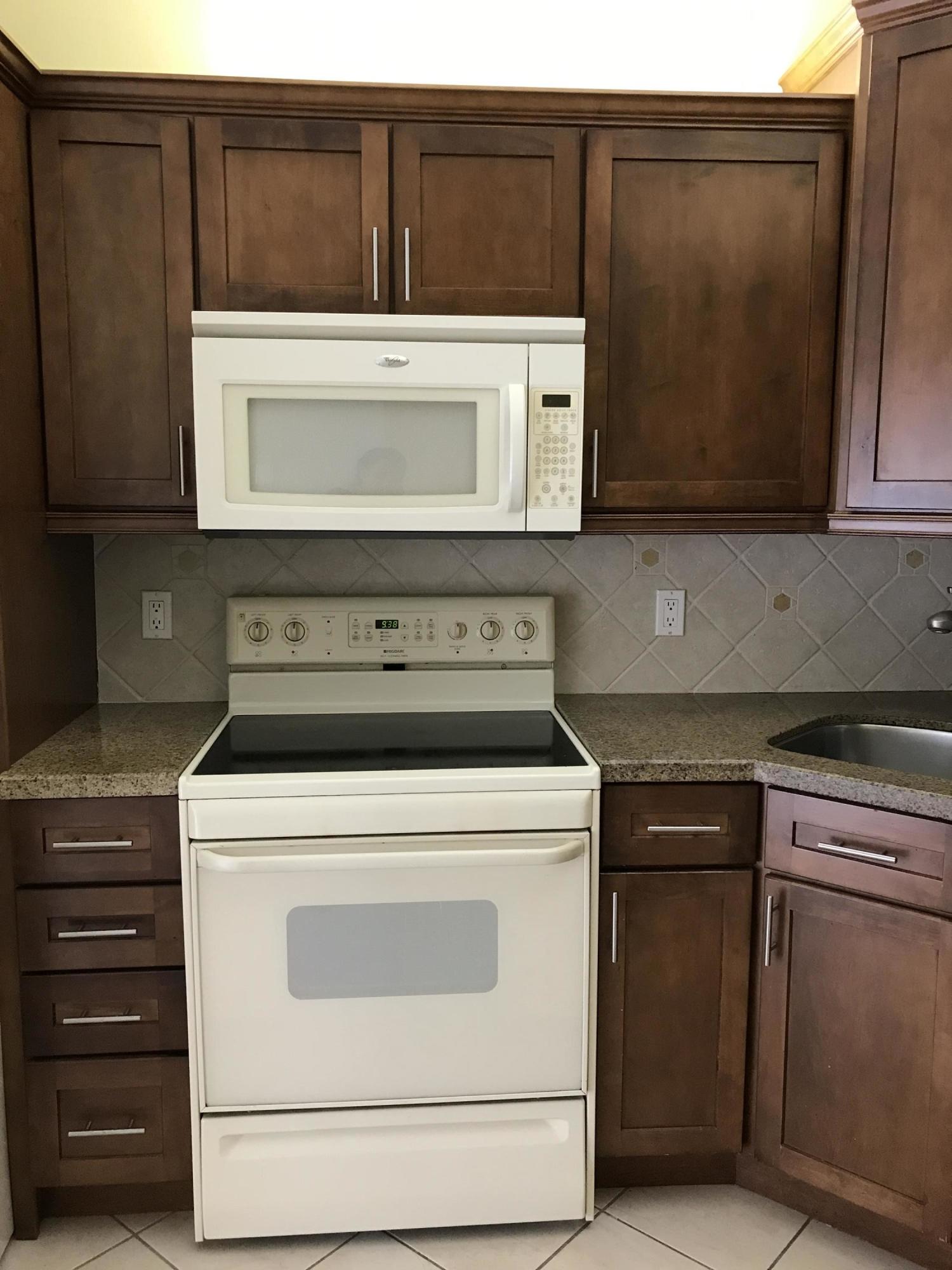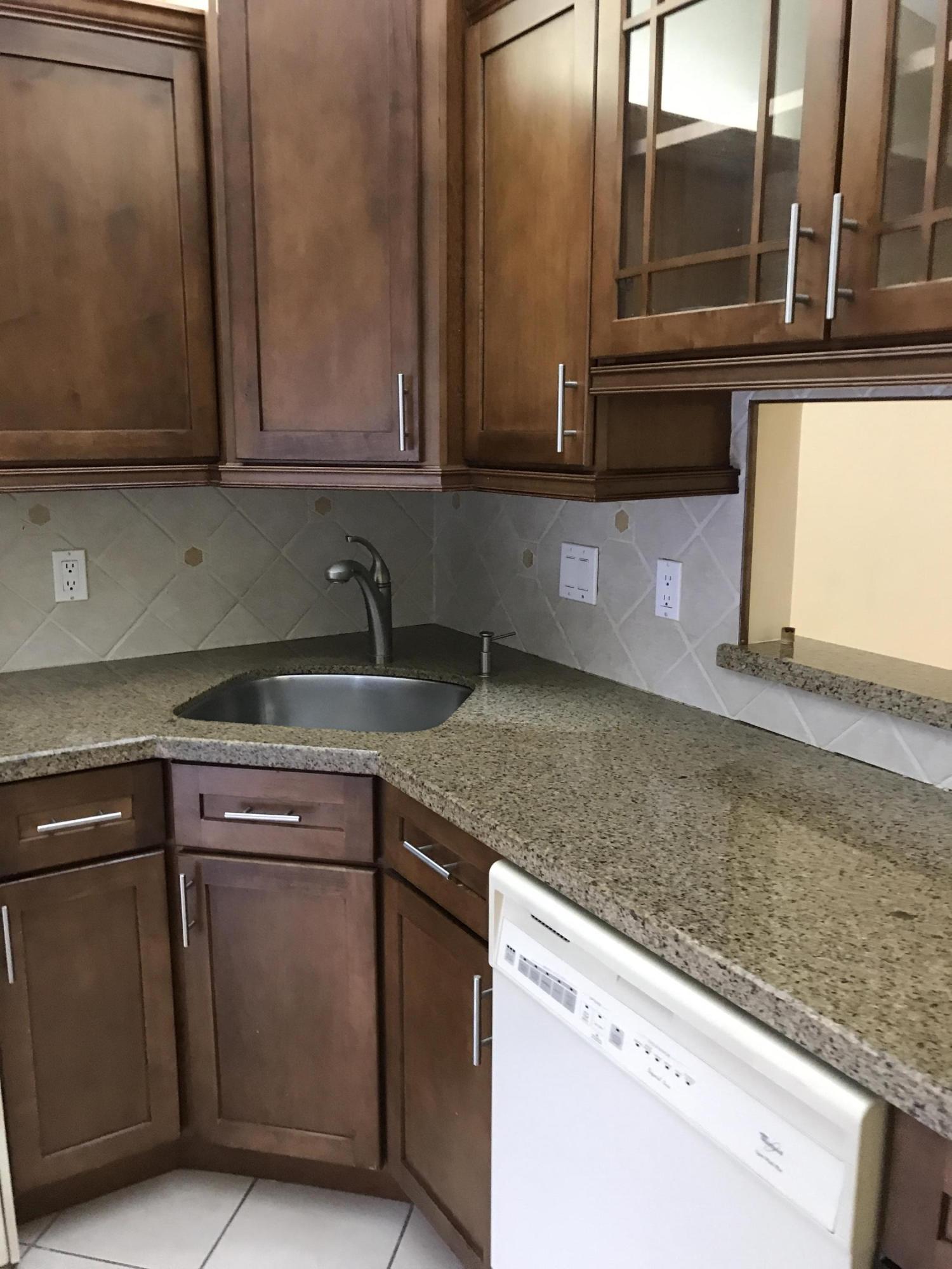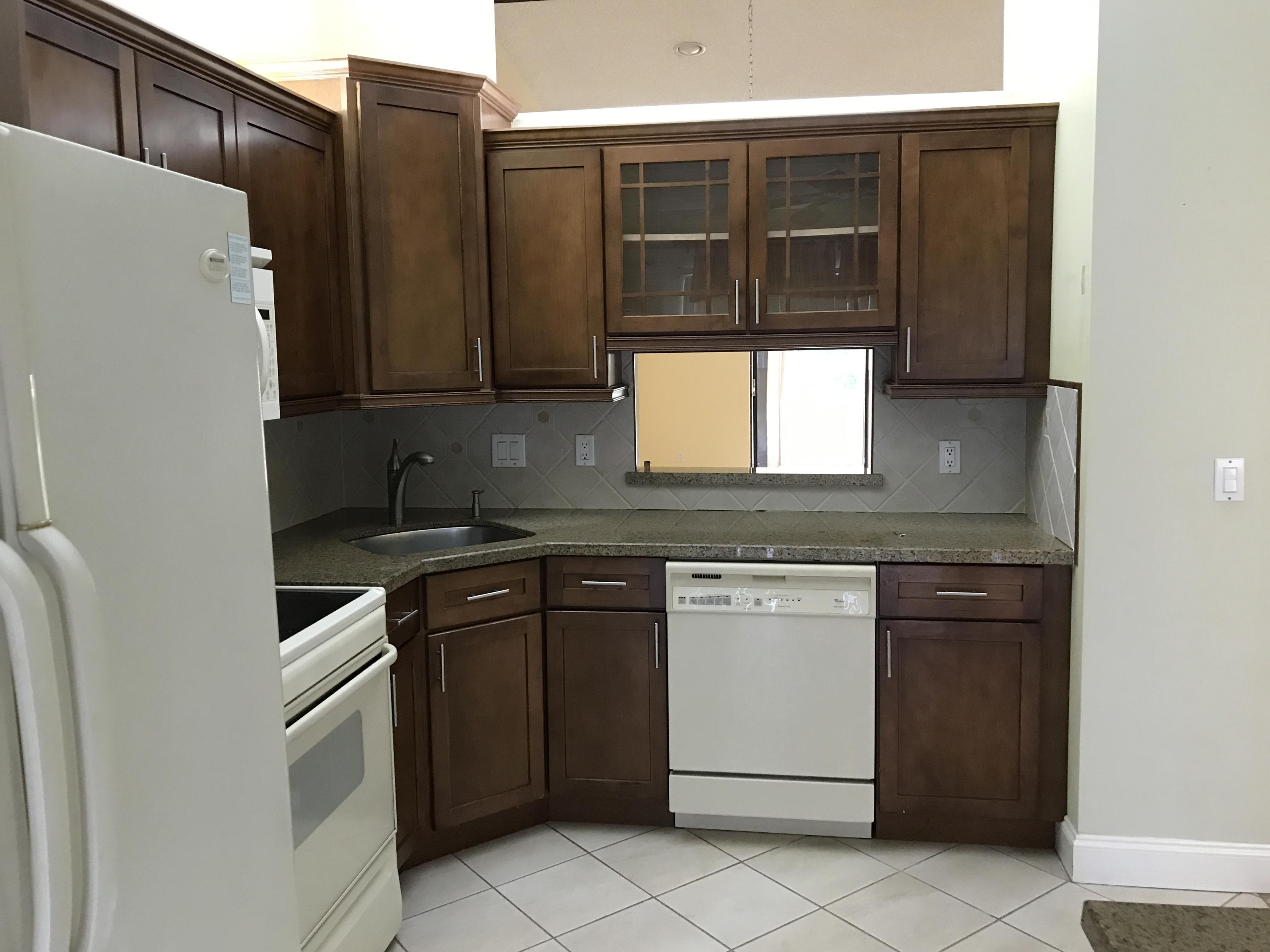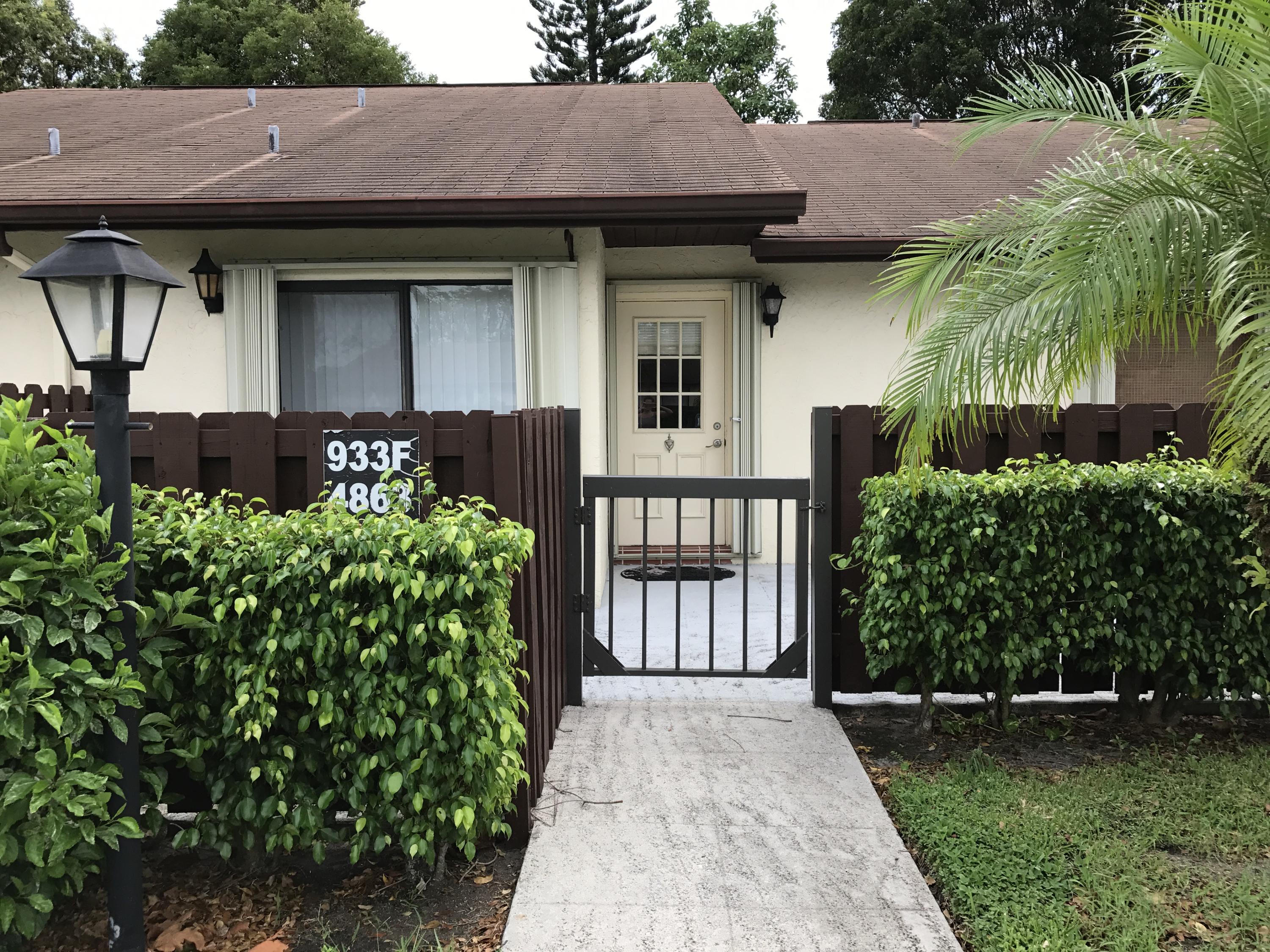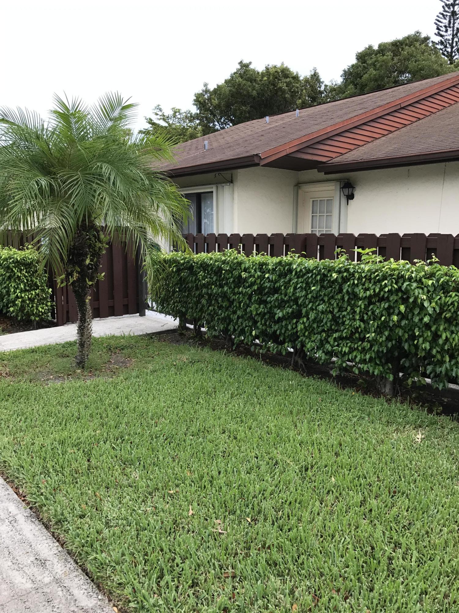 VERY RARE OPPORTUNITY to own a Villa in Pine Ridge at Haverhill. This villa features amazing high ceilings, fenced front courtyard and a backyard with paved patio for sitting. The updated kitchen features granite counters, beautiful wood cabinetry, custom tile back splash, under-mount sink, and coordinated appliances. Master bedroom features private bath and a walk in closet with functional built-ins. Both bathrooms have been updated and feature granite as well. Tile through out living spaces and wood laminate in the bedrooms, means NO CARPET! Low monthly HOA. Community offers pool, tennis, park, shuffle board, racquet ball and more! Close to new ball park, outlet mall, down town West Palm Beach, and I-95!