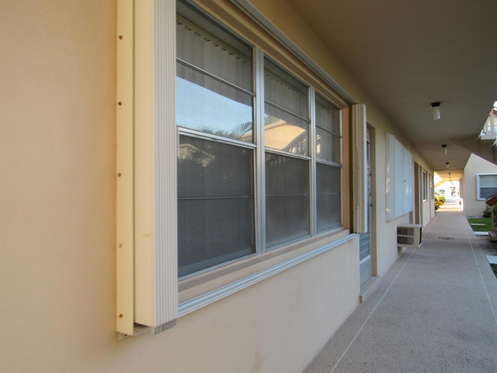 Great fir st floor one bedroom unit located near community exterior patio and laundry room. Being a corner unit you have extra lighting and central air conditioning. This unit has accordian hurricane shutters for your protection. Century Village is an active over 55 community with many pools, a large clubhouse, theater, and fitness center. The Village supplies free bus system within and without the community.