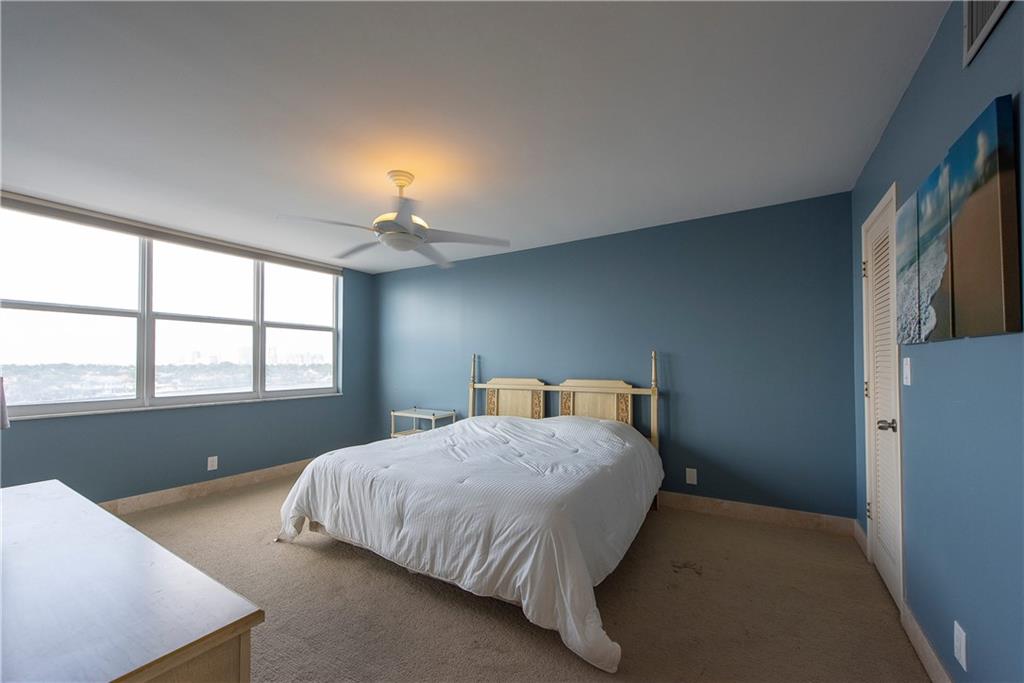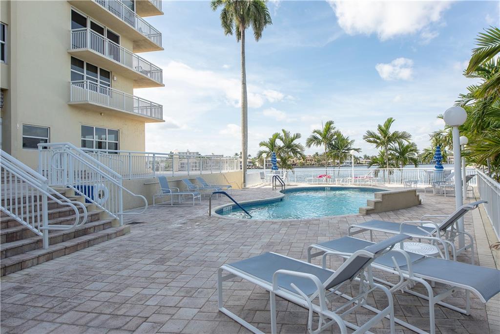 Intracoastal living at Bayshore Towers. This spacious 1BR/1.5BA 7th floor unit offers dramatic city and wide-waterway views and boasts impact windows/doors, a powder room for guests, marble floors, generously sized rooms and a 14' x 7' balcony for entertaining. Amenities include garage parking, heated pool, an immense waterside terrace, additional storage, a gracious lobby and a parking deck for guests. Conveniently located and only blocks to the sand. Makes the perfect as a pied-de-terre or Winter get-away!
