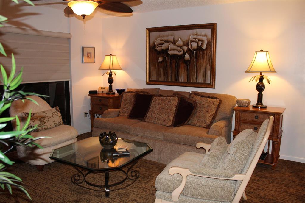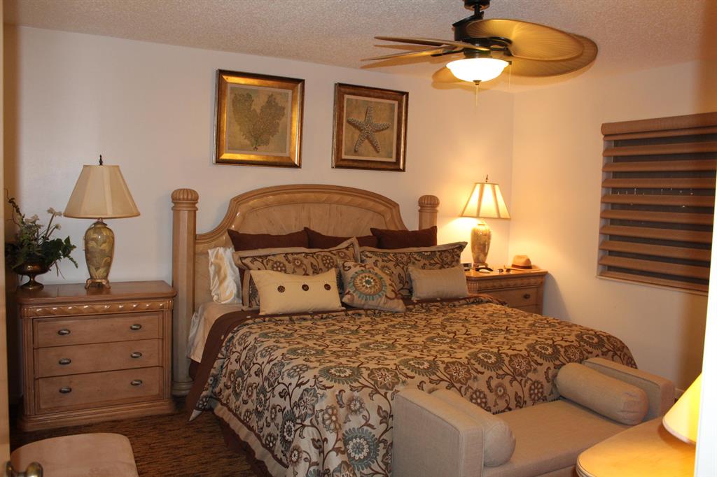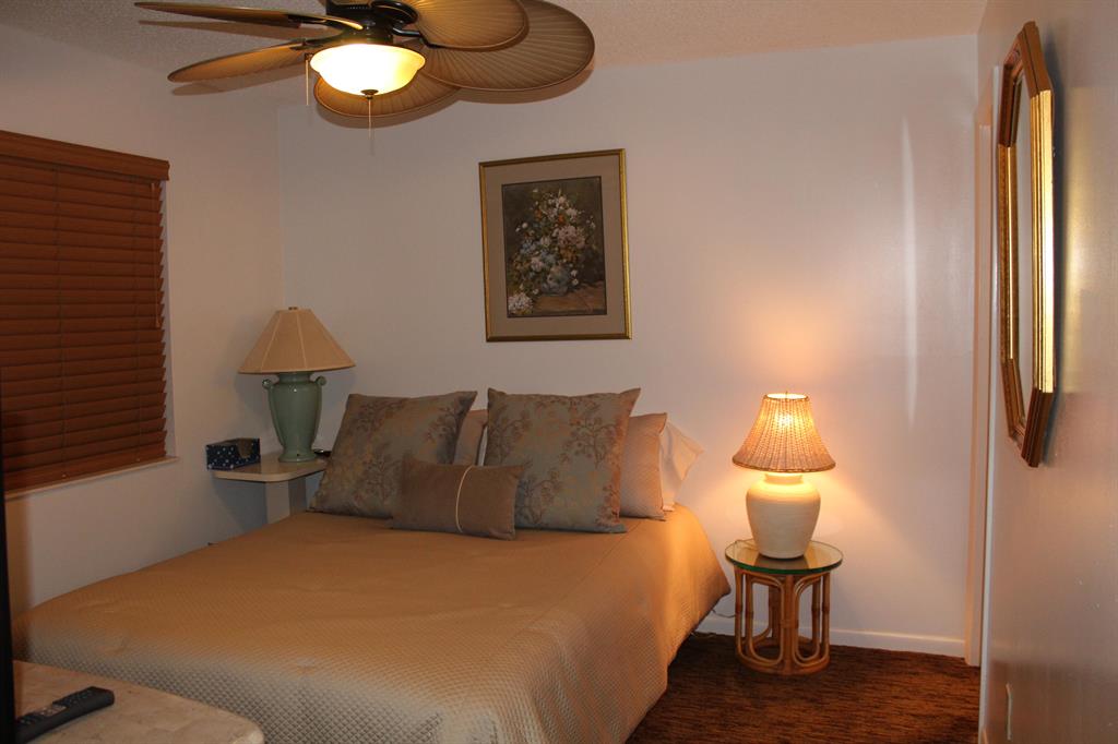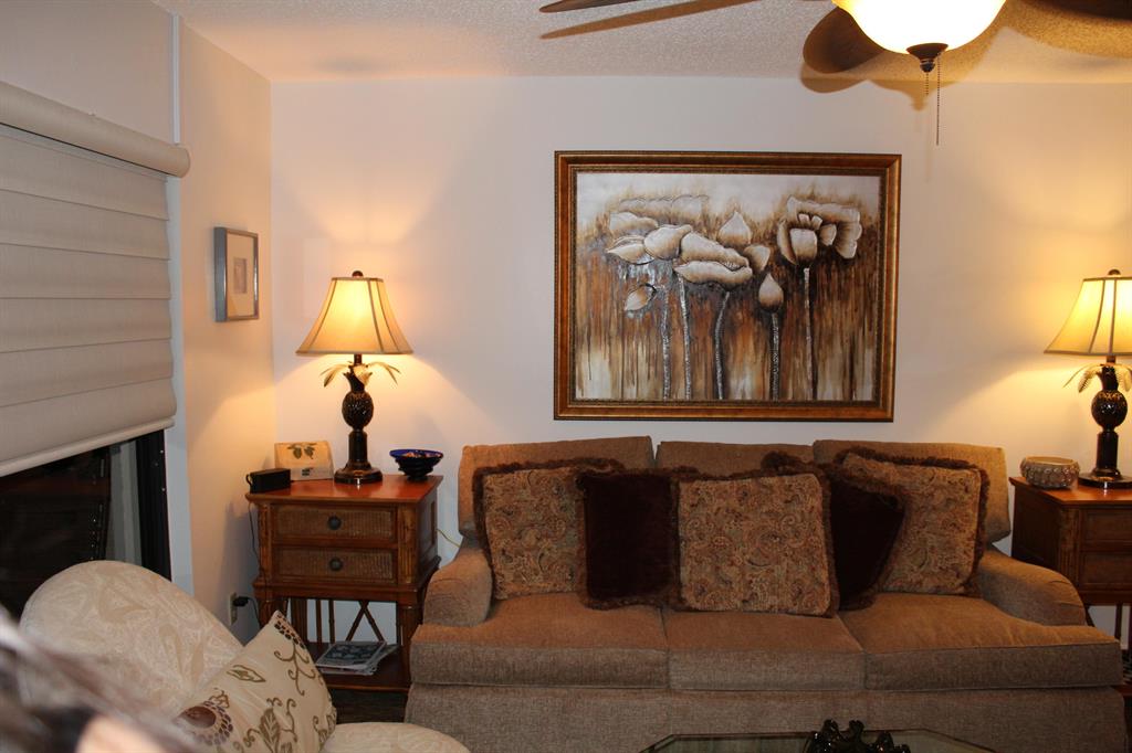 Lovely Penthouse unit has been meticulously maintained and has been lived in for a few months a year. Very clean, move-in condition. Enjoy beautiful lake view& sunsets from the comfort of your screened balcony. This light and bright, spacious 2/2 condo has updated kitchen with granite counter, beautiful cabinets and white appliances, full size stack-able W/D, walk in closets. Motorized shades. This turn key condo won't last. Great 2nd home opportunity. Furniture negotiable. The community of Golden Lakes Villages has so many fantastic amenities and activities: 24 hr gated security, a modern functional clubhouse, auditorium with stage and kitchen for dinners, dancing and shows, art and crafts room, activity director, BBQ, Billiards & pool table room, Bocce ball courts, bus service and cafe.
