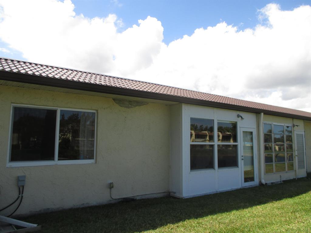 Large updated corner Villa with formal dining area, enclosed patio and all IMPACT WINDOWS. Interior of unit just painted. Tile floors to be cleaned by 6/30. Eat-in kitchen, large guest bedroom. Master has two closets. Motivated Seller. Lake Meryl has its own satellite pool for condo E & F sections. New roof. Active 55+ guard gated community with lots of social activities. One Pet OK max 30lb. Courtesy Bus to shops, malls, grocery, etc. two days a week. Lots included in maintenance, water, Bldg insur, Comcast Cable w/HBO, Internet, 24/7 guard gated, social director, Clubhouse facilities, management company on site M-F. Come discover Golden Lakes Village.