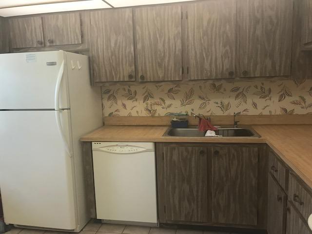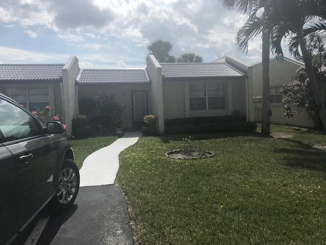 This is a corner villa in dog friendly B section of 55+ Golden Lakes Village. This unit is being sold AS IS and is a fixer upper with a 2017 new AC. Roof has been done, plenty of light, large screened porch. Newer refrigerator and tiled in living room & kitchen. Washer & dryer hook up on back porch. Nice views off the back and close to clubhouse and 2 pools. Gym, activities, cafe, and so much more in this great development. Minutes to shopping and both turnpike and I 95. Beaches and City Place 20'' in heavy traffic.