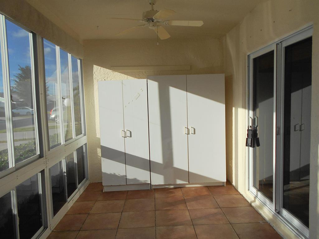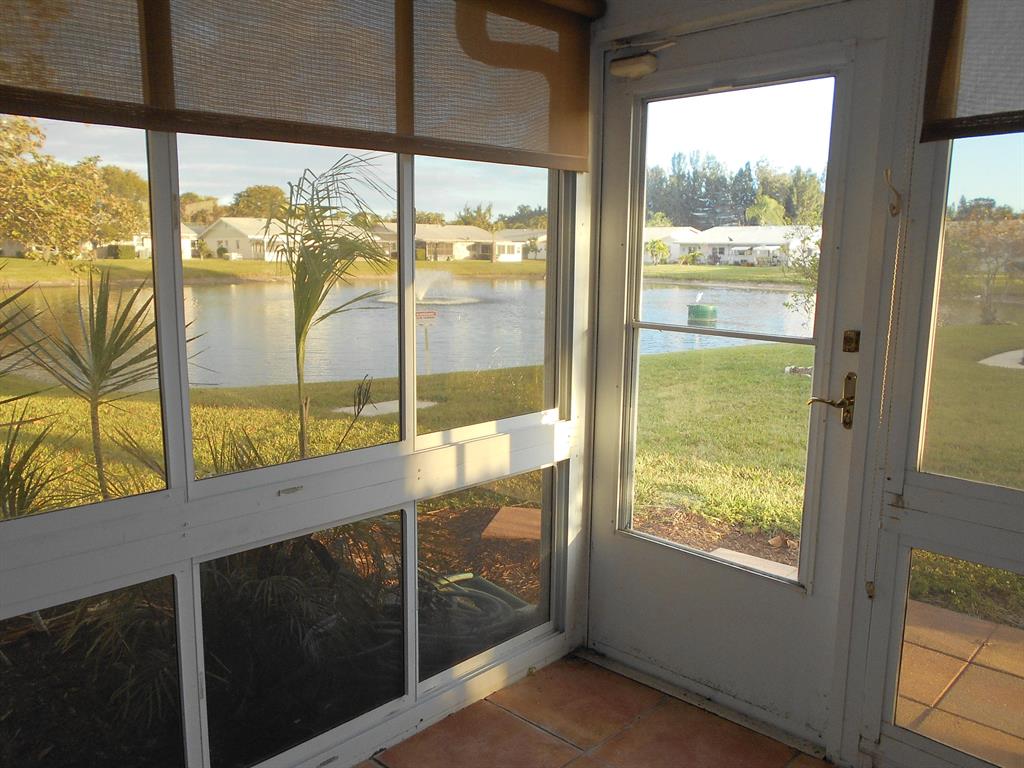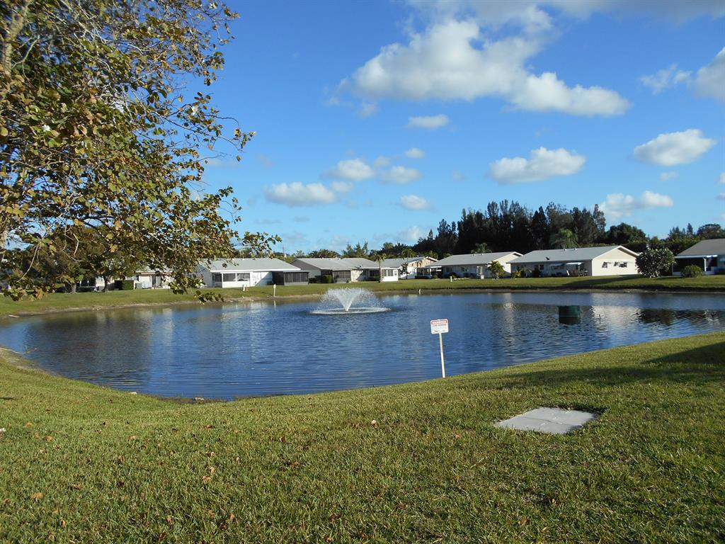 Lake views, end unit, 3 exposures; all wood cabinets, k 42'', skylight, LED hi hats fixtures counters Corian?, Dbl. pantry, Crown molding, tiled through out, incl. 2 porches. Back patio w/utility sink, blt. in cabs., all closets have blt. in organizers, walk in MBR closet built in drawers, both baths updated, 6 all wood doors, gst. BR blt. in office shelves & desk, Wall t.v. framing in MB. Custom wood entertainment ctr. built in. Custom window treatments; 5 fans; blt. in storage on entry & rear patios; windows also screens. A/C Trane 2009. Heated Swimming community pool. Minutes to post office/grocery, airport 10-15 min.