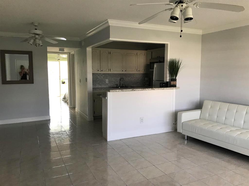 The best buy in Century Village! Gorgeous, freshly painted, renovated apartment with totally open kitchen that improves the look and flow of the apartment. New crown molding, base boards & ceiling fans. A/C units in both rooms less than 2 years old. Close to the pool. Amenities galore! Nothing to add or change - Just bring your toothbrush & move right in!