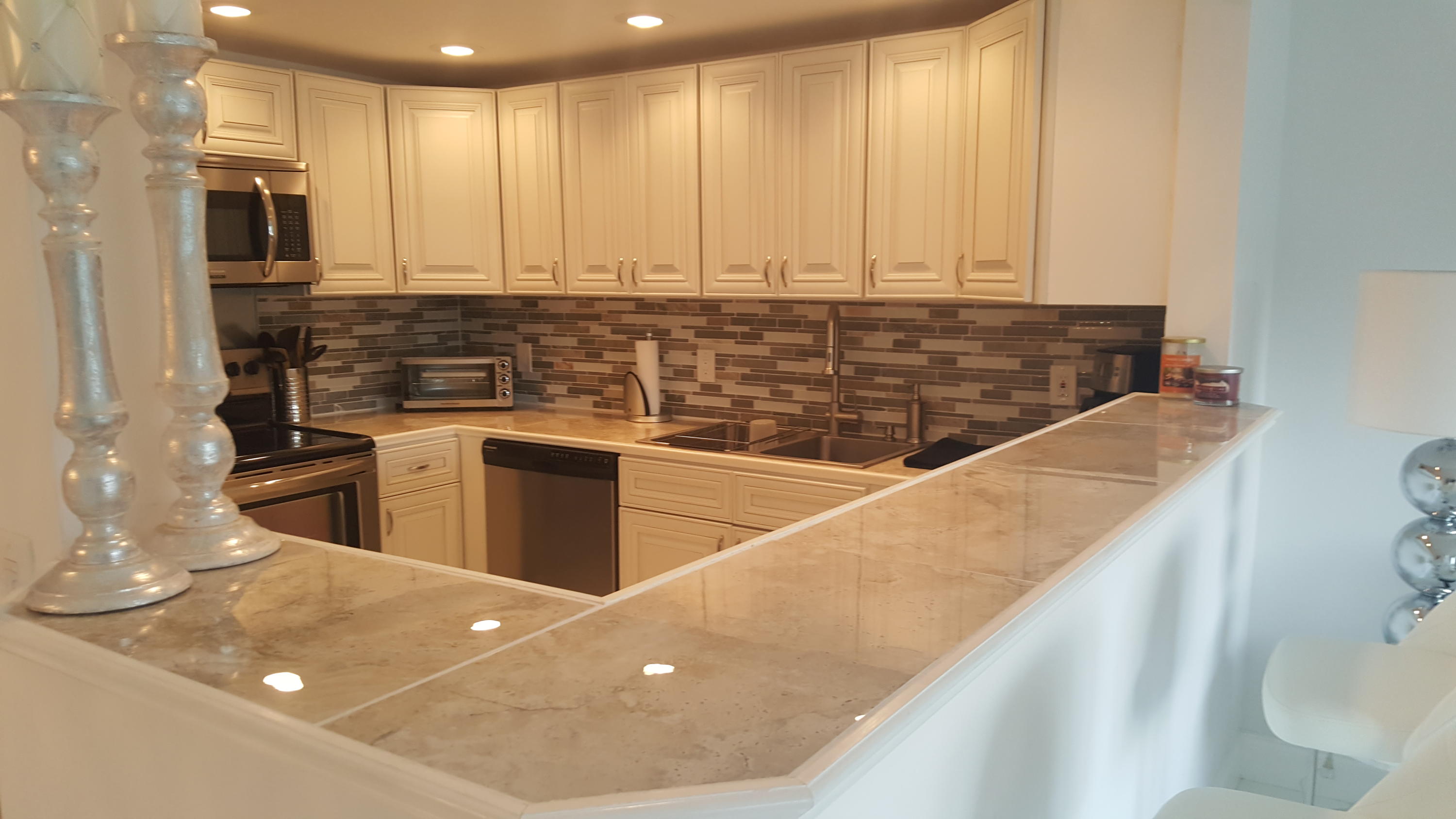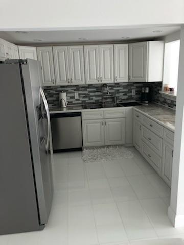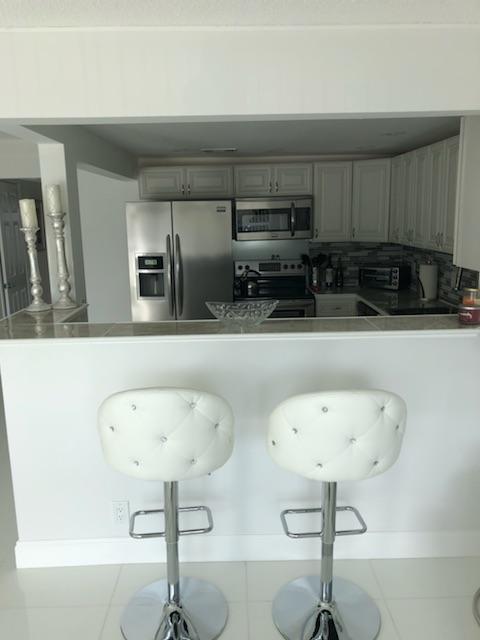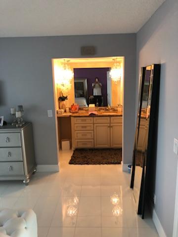 Spectacular luxury condo with top of the line finishes and a gorgeous water view. This is a must see. 12 x 24 pure white recycled glass tile throughout, with soundproofing cork board underneath, new impact windows and front door with lifetime guarantee, Trane central air new in 2015, new Rheem hot water heater installed 1/2017, S/S Frigidaire appliances. Upgraded solid wood kitchen cabinets and glass tiled back splash and porcelain counter tops. New 6 panel doors throughout. Oversized master bedroom with his and her closets. Upgrades continue in both bathrooms with designer vanities and lighting and glass shower door is new in master bathroom. The modern design has a clean crisp feel and the water view from your enclosed lanai is fabulous. Elevator building with two laundry rooms per