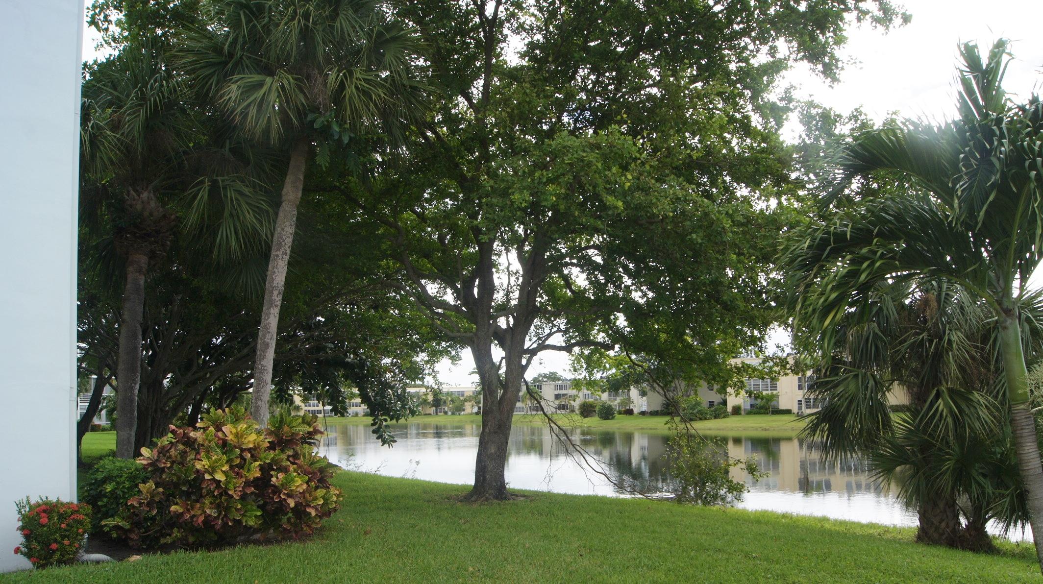 LOVELY 2 BEDROOM ON GROUNDFLOOR - JUST LIKE HOME WITH RELAXING LAKE VIEWS PATIO HAS HURRICANE SHUTTERS WITH ENCLOSED PATIO COMPLETELY TILED, FURNISHED, 2 BATHROOMS 1 SHOWER & BATHTUB NEW REFRIGERATOR & STOVE & WALK TO 2 POOLS - 2 LAUNDRY ROOMS ON EACH FLOOR.