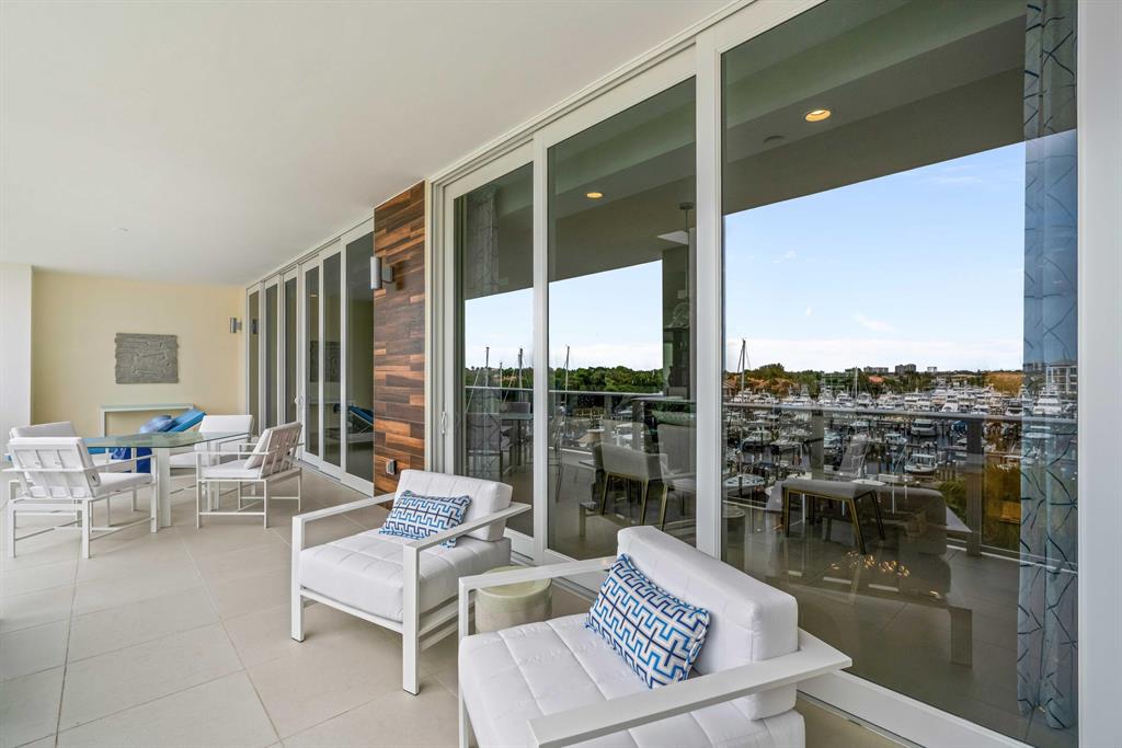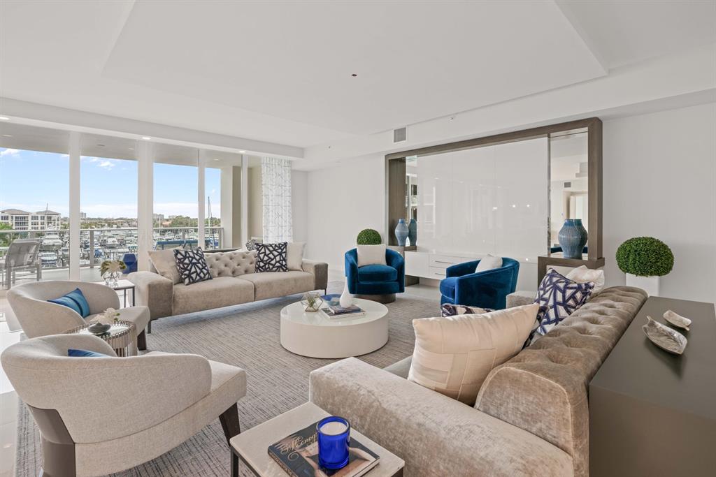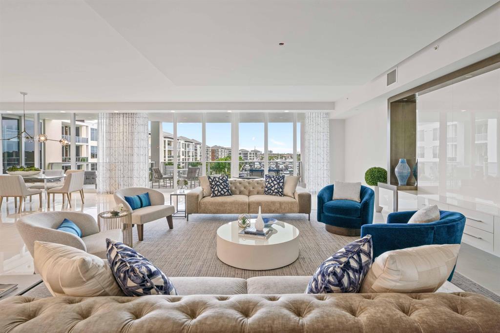 This newly constructed professionally decorated custom residence features 4 bedrooms, 4.1 baths, built-in closets, built-in entertainment centers in both the great room and study and 3 covered parking spots. Azure is Palm Beach Gardens premier waterfront address. Residences will be greeted at the 24/7 manned entry gate and continue through to Azure's two mid-rise buildings which wrap the harbor and its full service marina. Owners will conveniently exit their 3 garaged parking spaces and enter their privately keyed elevator to their great room residence that features expansive living areas and 9-10 foot ceilings. Included features: 48 x 48 porcelain tile floors, quartz counters, Grohe plumbing fixtures, Thermador appliances and impact windows and doors. Available for immediate occupancy.