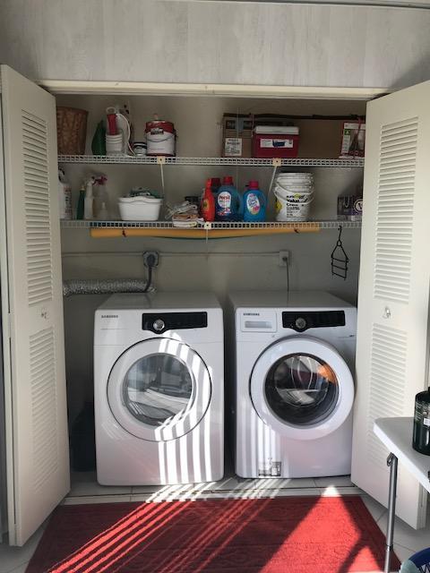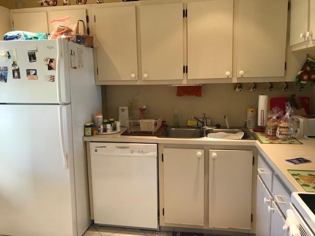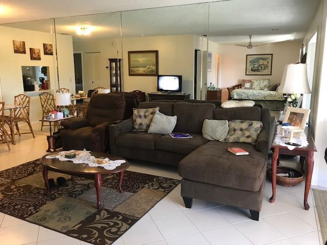 Bright and clean opened up 2/2 convertible with glassed in all one level porch included in sqft . Diagonal laid white tiles all thru out the unit except the master which has carpet. All new appliances, washer, dryer, frig, dishwasher, AC, water heater, and microwave. Unfurnished but may leave dining table if buyer wants it. Just around the corner from the large satellite pool and walking to clubhouse too.