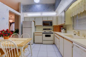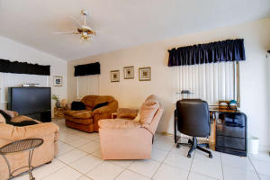 West Palms Best Kept Secret. Solid concrete block home with one car garage and enclosed patio. Private guarded entry with roaming security, 18 hole private golf course with men's and woman's leagues, clubhouse, tennis courts, miniature golf course, community pool,2 newly remodeled gyms. Golf carts allowed inside the community and pet friendly. This is a must see community and home.