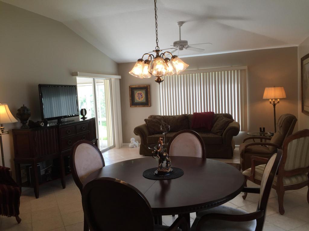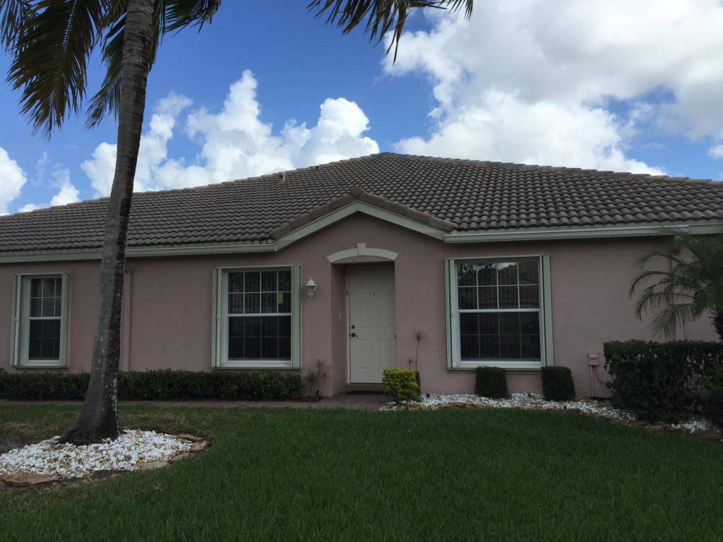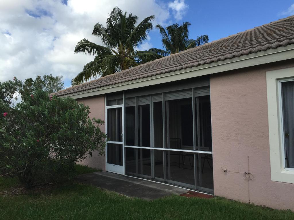 Sweet 3/2/2 corner villa, maintenance-free, in ultra convenient Andros Isle. Unit has been utilzed only as a snowbird residemnce. Pride of ownership abounds. Closet in 3rd bedroom has been modified as a desk/work station, but can be returned as a closet. Nice waterview from Great Room and Patio. Accordian hurricane shutters. Tiled patio. Oak Kitchen cabinets. Furniture is premier quality and includes tv. Andros Isle is a gated community (staffed 24/7)of villas and single family residences and enjoys the advantages of prime location. Easy access to Florida Turnpike, Palm Beach Airport, West Palm Beach downtown area and Palm Beach Island, Wellington Green Mall, West Palm Beach Fire/Rescue, Regal Multiplex, and more. Private access road to Publix