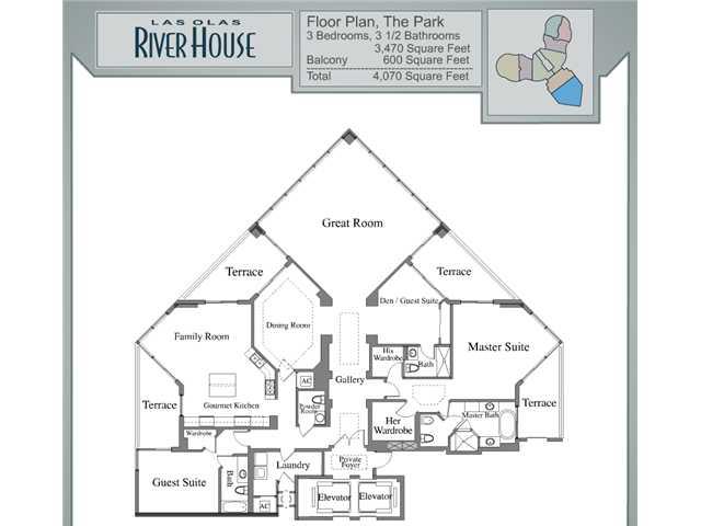Park unit,10' ceilings, 3,470' living space and 600' of balconies. Feel like you are living on the river and riverwalk. 180 degree view with four separate patios that touch the tree tops. Master bedroom features two walk-in closets, magnificent master ba th with Totto fixtures and tub. Marble floors throughout. Gourmet kitchen, Miele appliances, two subzero refigerators, double convection ovens, center island. One floor down and you are out the door and on the river! This is a concierge 5 star building.
