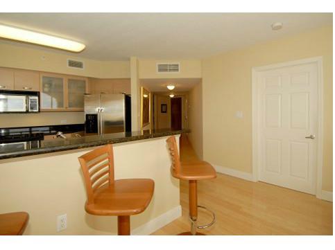 Stunning light bamboo floors throughout and with ocean views from the living room. 2 bedroom split with Den (or 3rd bedroom). Open kitchen, granite counter tops, marble bathrooms, convenient laundry closet . Newly painted entry and living room. Resort-li ke living impressive lobby, 2 pools & Ocean Cabana Club on deeded beach, fitness center, billiards, sports lounge and bike storage. A must see!!! You will love this one !!! 2 pets ok. Easy to show!!